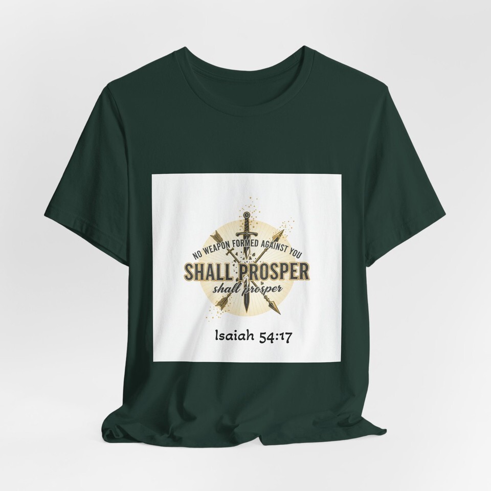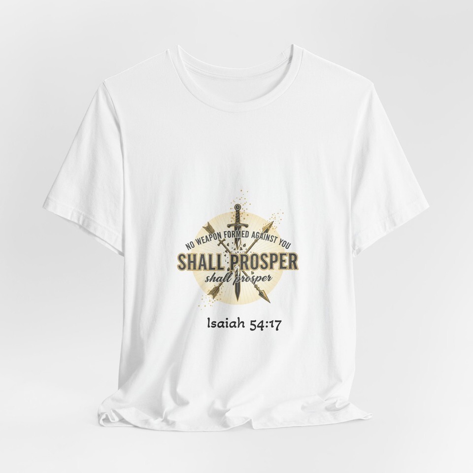 Shall Prosper Isaiah 54:17 Bible Verse Tee | Sword Shield Christian