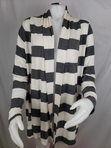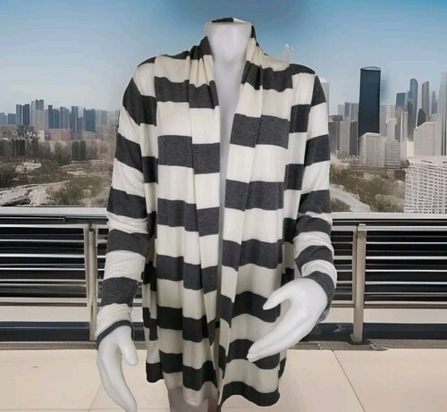 Honey Punch x Stitch Fix Women's Layla Open Shawl Cardigan in Gray/ Cream Stripe with Tan Elbow Patches