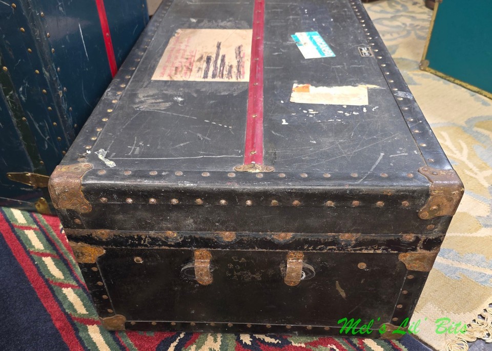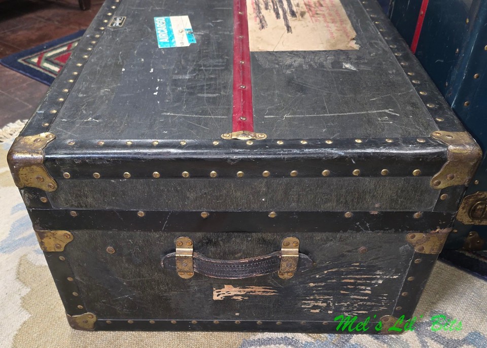 Trunk is a nice solid black color with brass hardware and a red racing strip down the middle.