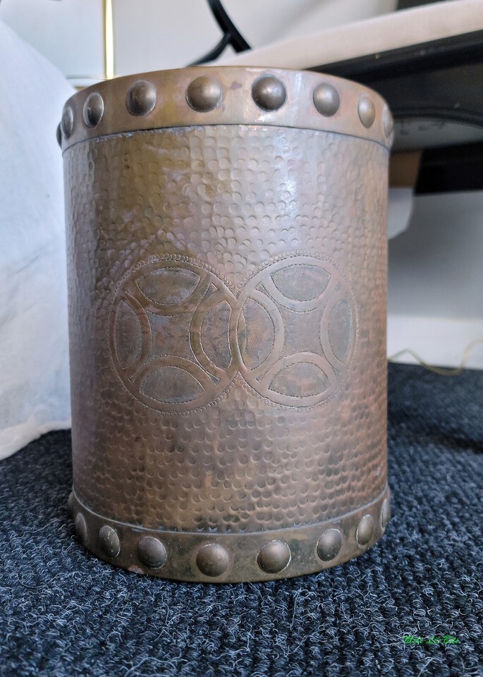 19th Century Hammered Brass Umbrella Stand Bucket Waste Basket