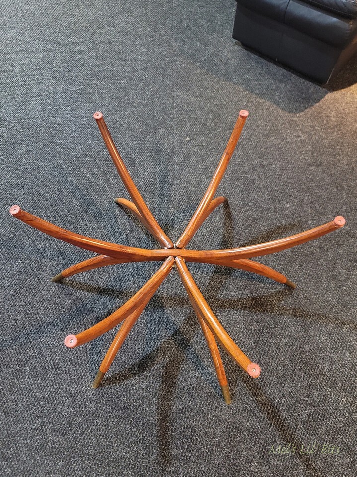 The classic Mahogany folding spider leg base is fantastic and beautifully accented with brass finials and resting on rubber feet.