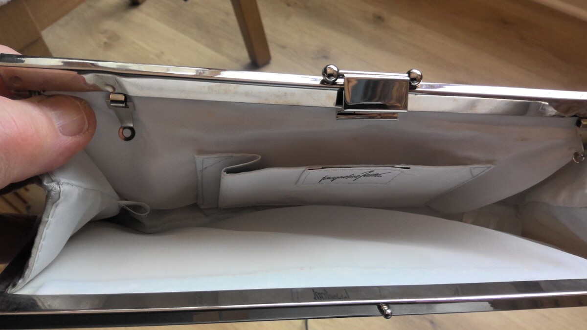 Gently used Jaqueline Ferrar clutch. It is in great condition. There used to be a strap as you might be able to tell from the picture of the inside of the clutch.