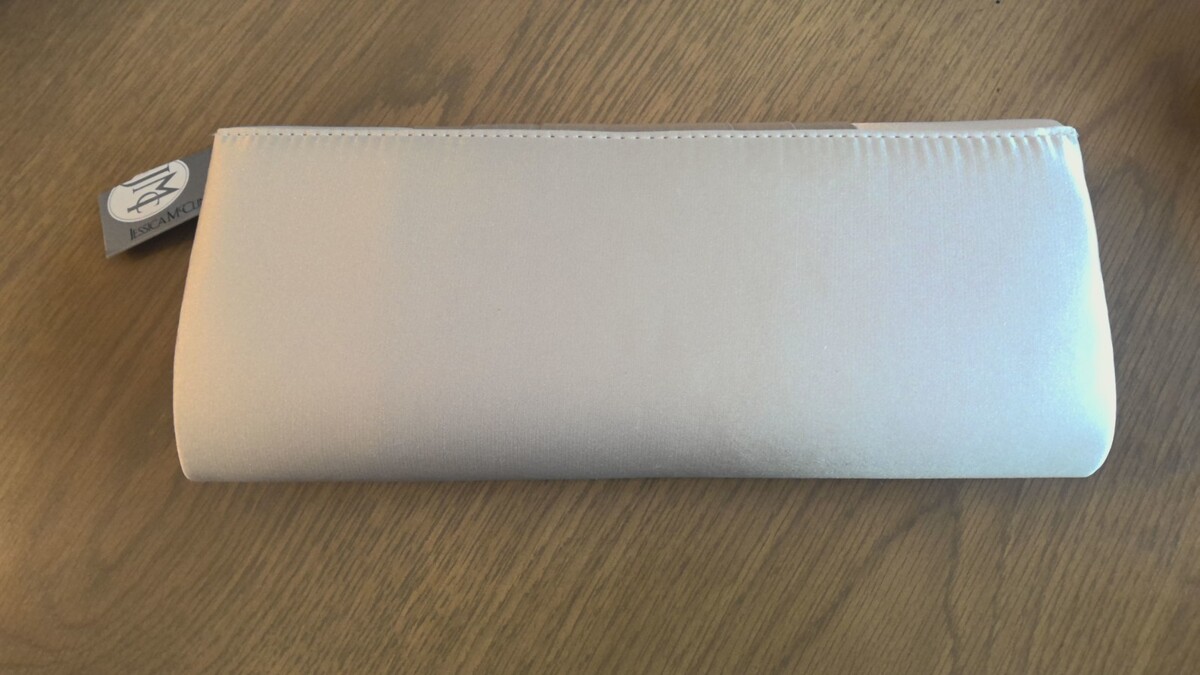 Jessica McClintock Champagne Satin Clutch Evening Bag Formal Purse NWT