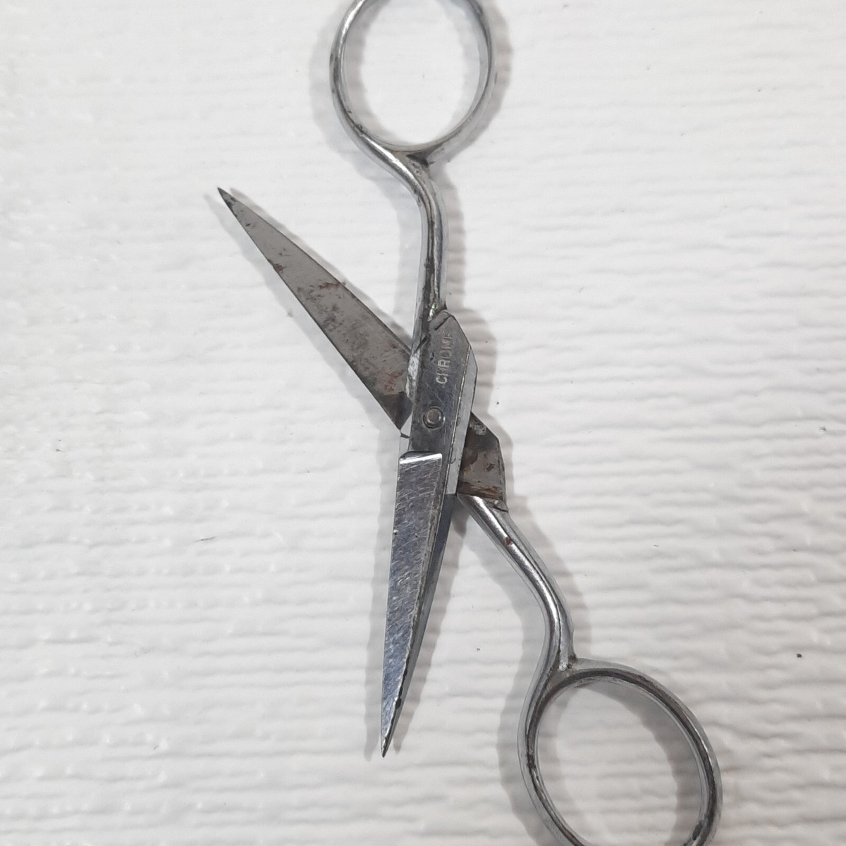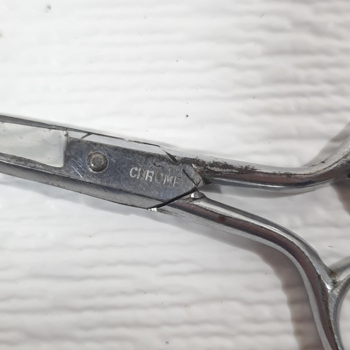 Vintage Real Silk Hosiery Mills scissors chrome metal sewing notion tool RARE