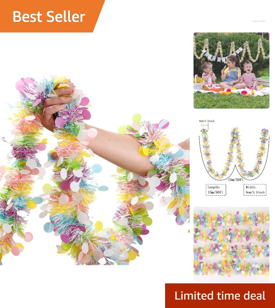 Generous Length: Measuring approximately 50 feet (15 meters) long and 3.7 inches (9.5 cm) wide, this garland allows for expansive decoration options.