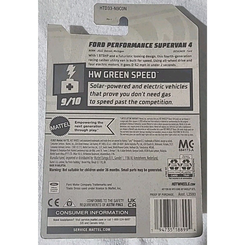 Hot Wheels 1:64 Diecast Ford Performance Supervan 4 Green Speed 128/250 2024
