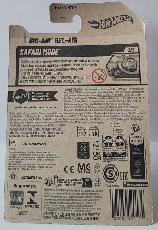 The 2025 Hot Wheels Big-Air Bel-Air Red 155/250 Safari Mode 3/5 is a highly collectible diecast truck in 1:64 scale. This Chevrolet truck in red color features special and limited edition designs, making it a sought-after item among Hot Wheels enthusiasts. With an unopened box and a recommended age range of 3+, this toy vehicle is perfect for boys and girls of various age levels who enjoy playing with cars and trucks. Made in Malaysia, this Hot Wheels product is part of the Safari Mode series, adding to its appeal and value within the diecast and toy vehicles category.