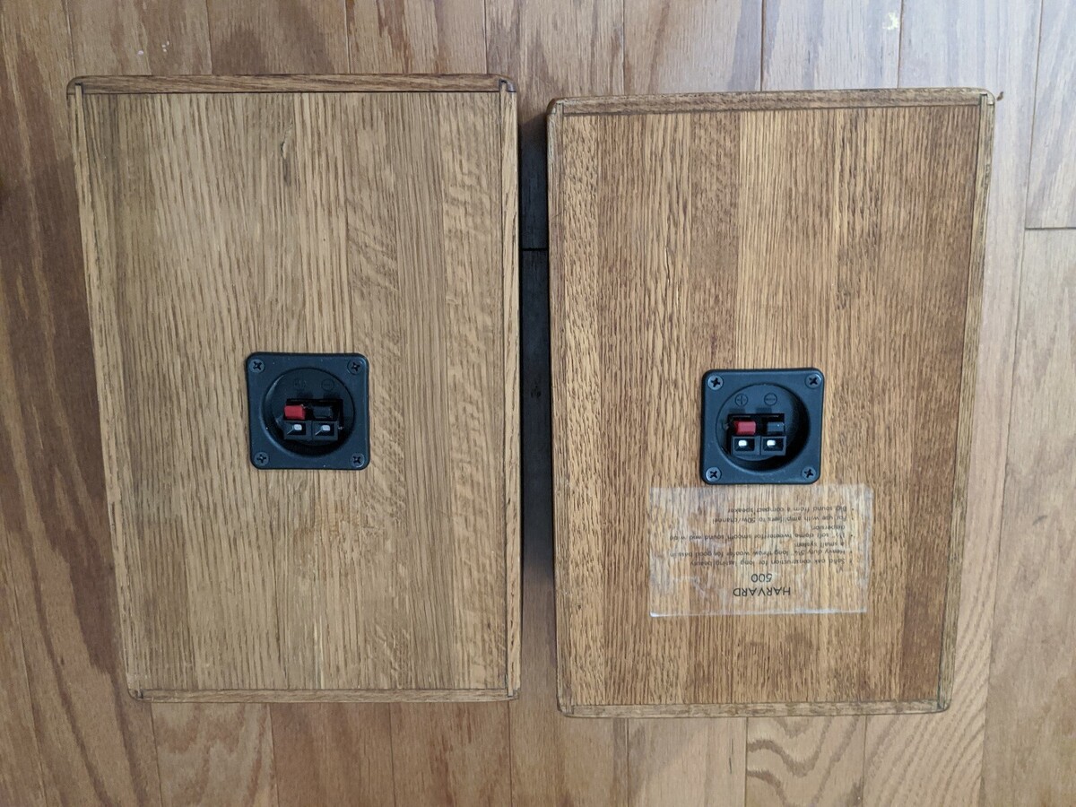 In vendita c'e una coppia di altoparlanti da scaffale Harvard modello 500 in custodie di rovere.