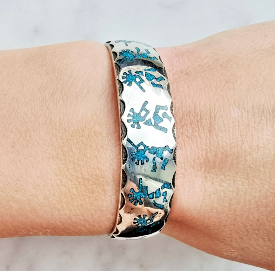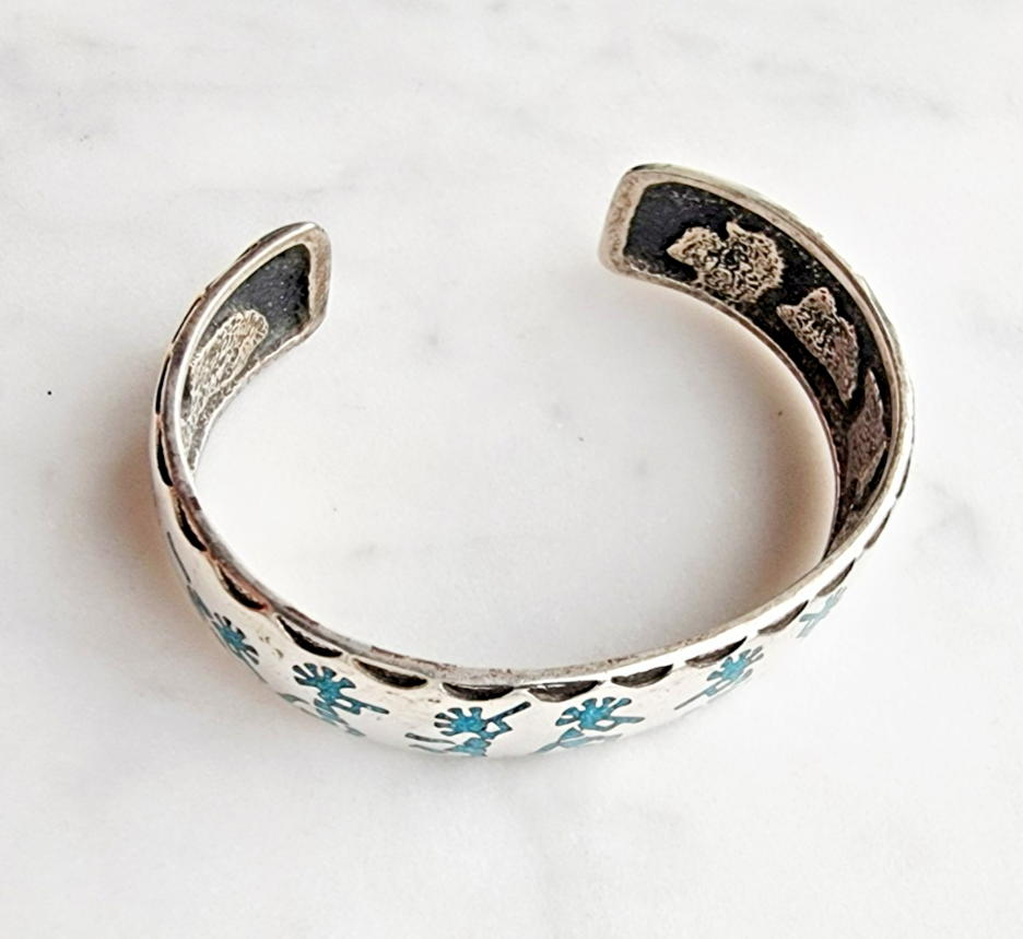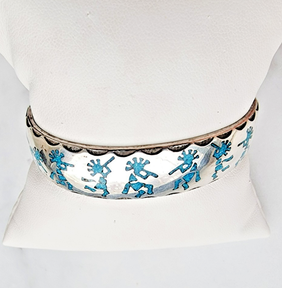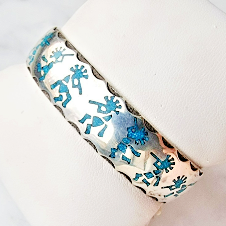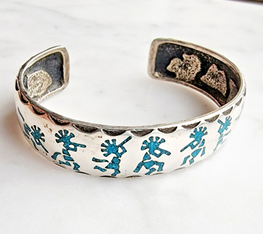 KOKOPELLI SOUTHWEST VINTAGE 925 STERLING SILVER TURQUOISE CUFF BRACELET 26.5 g