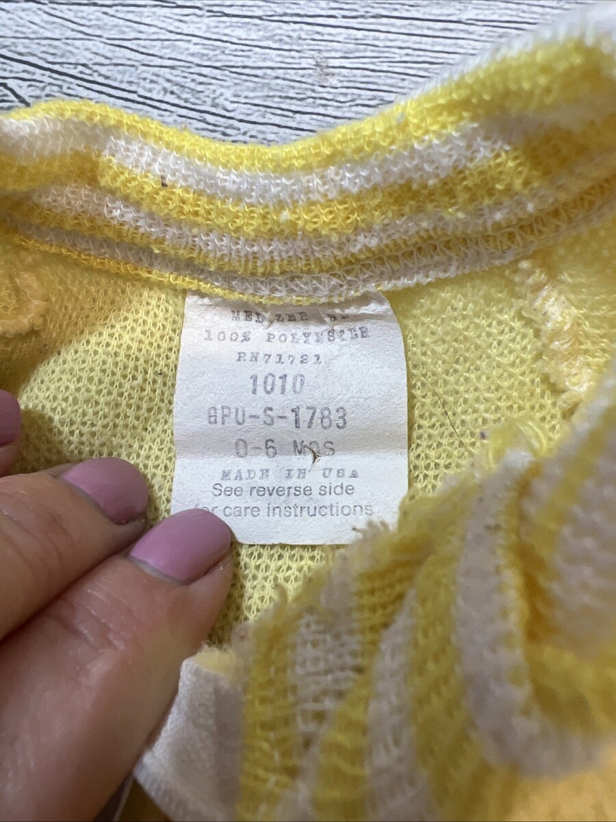 Vintage 0/6 Months Fleece Footed Pajamas Newborn Baby Yellow Girl Boy USA