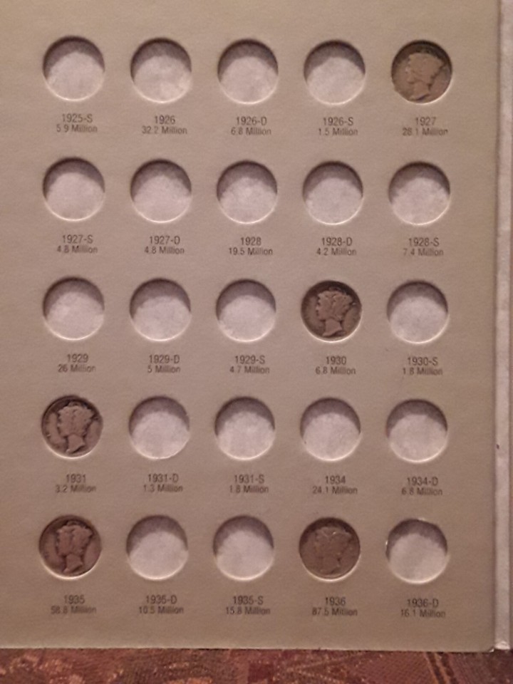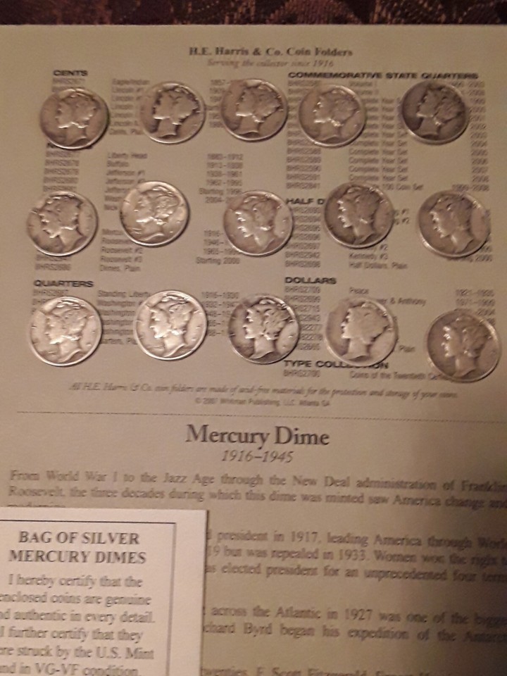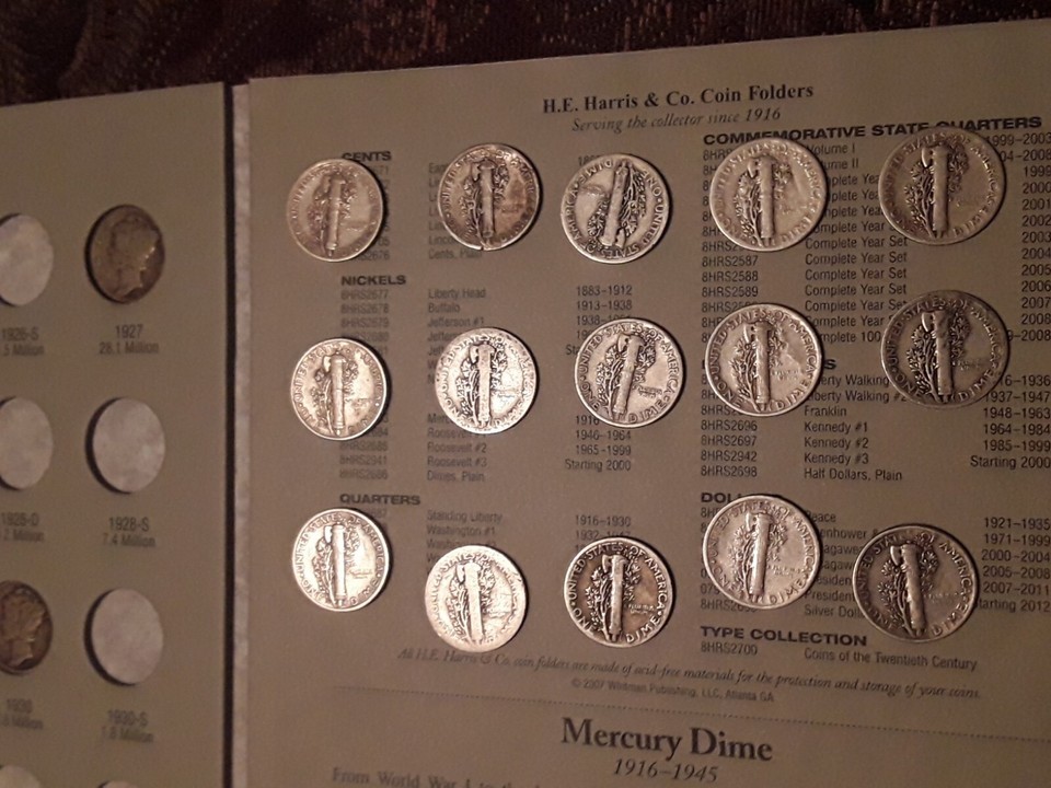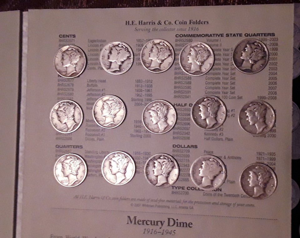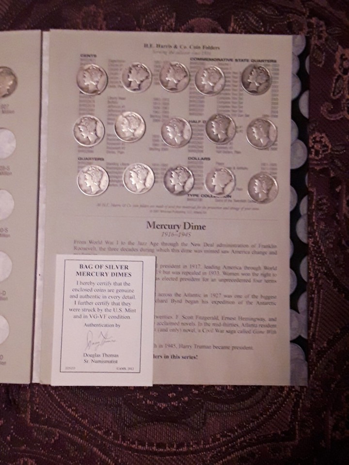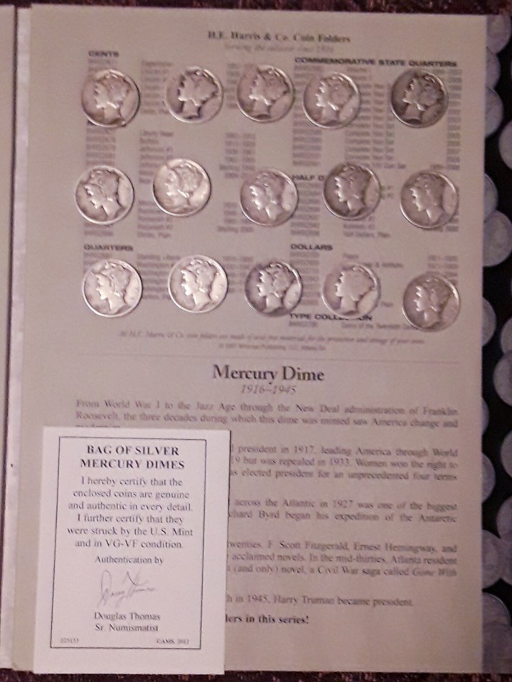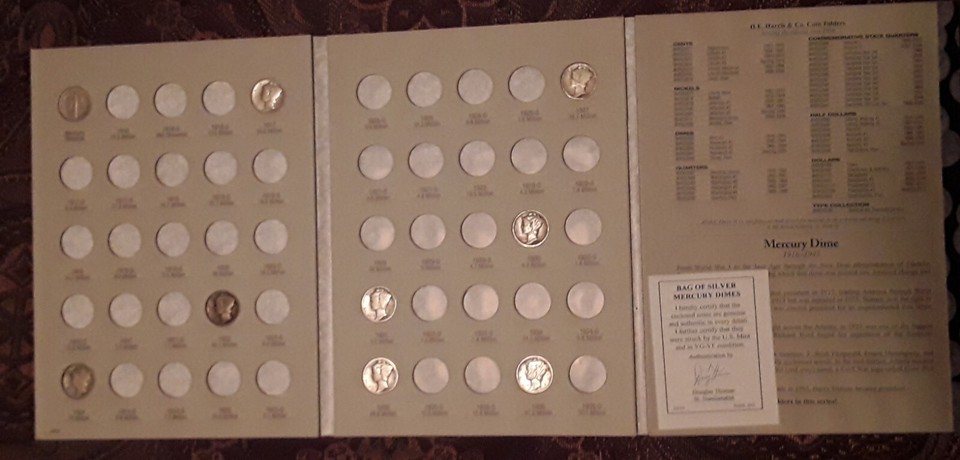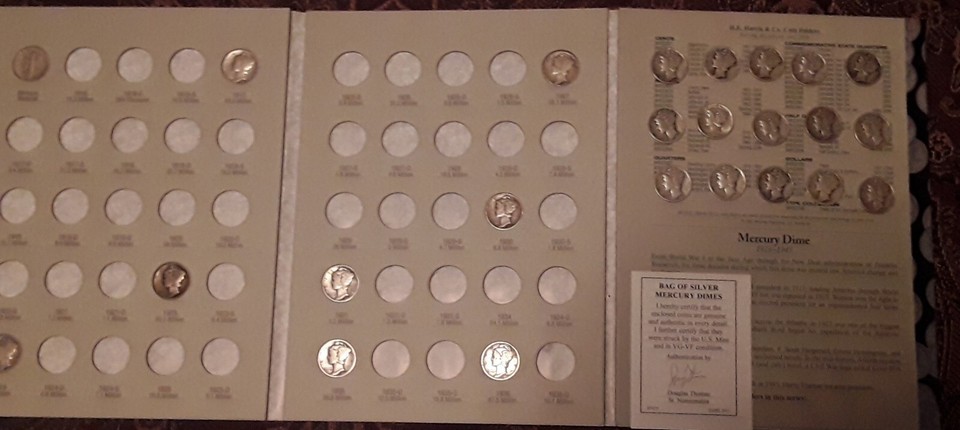 1 Troy Oz. Mercury Dimes 1916-45 with Whitman Collectors Book RARE Silver