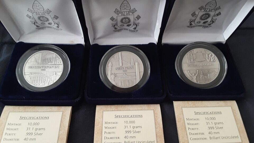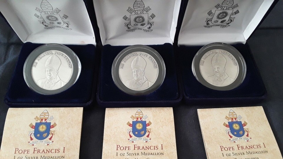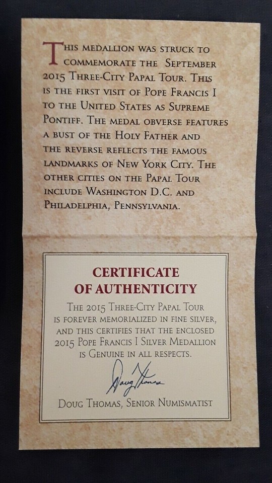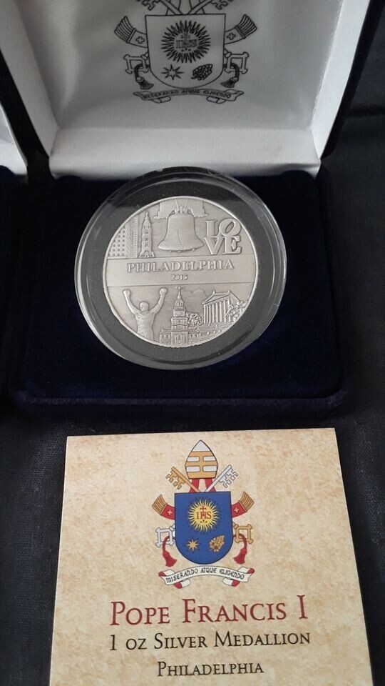 1-2015 Philadelphia PA Pope Francis I 1oz.Silver Medal From 3 US City Papal Tour