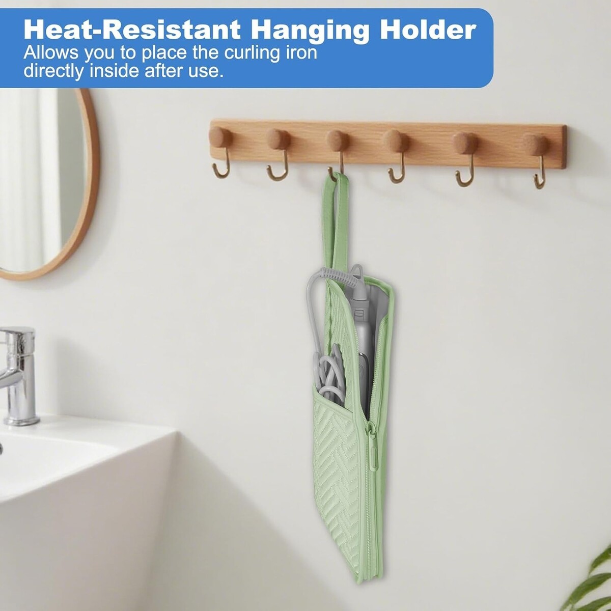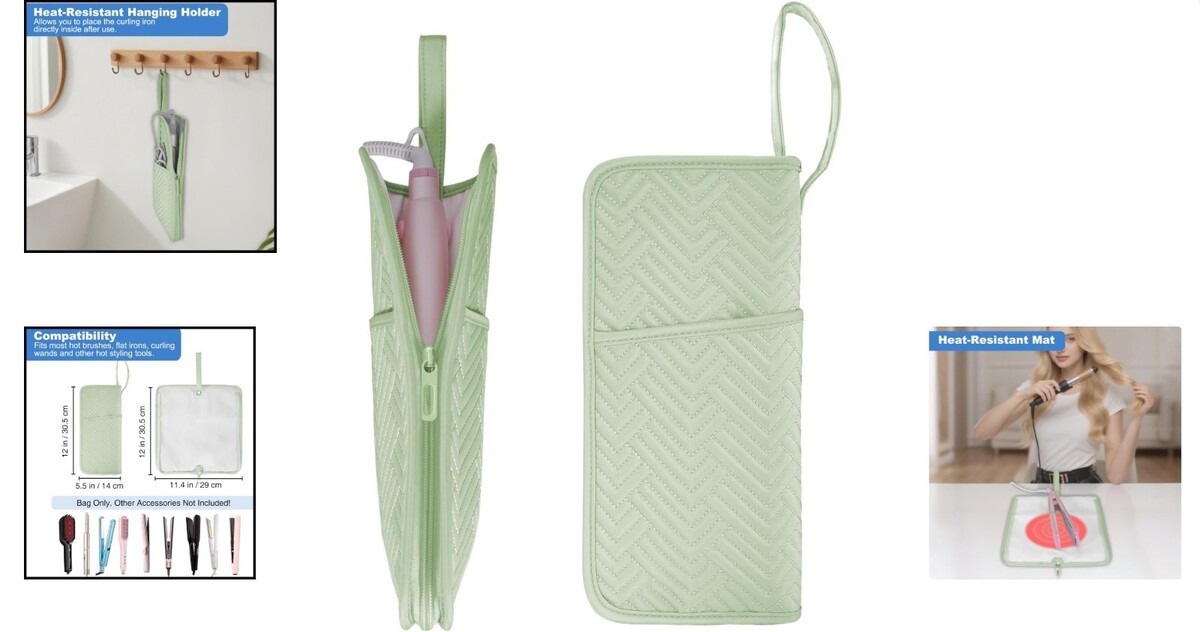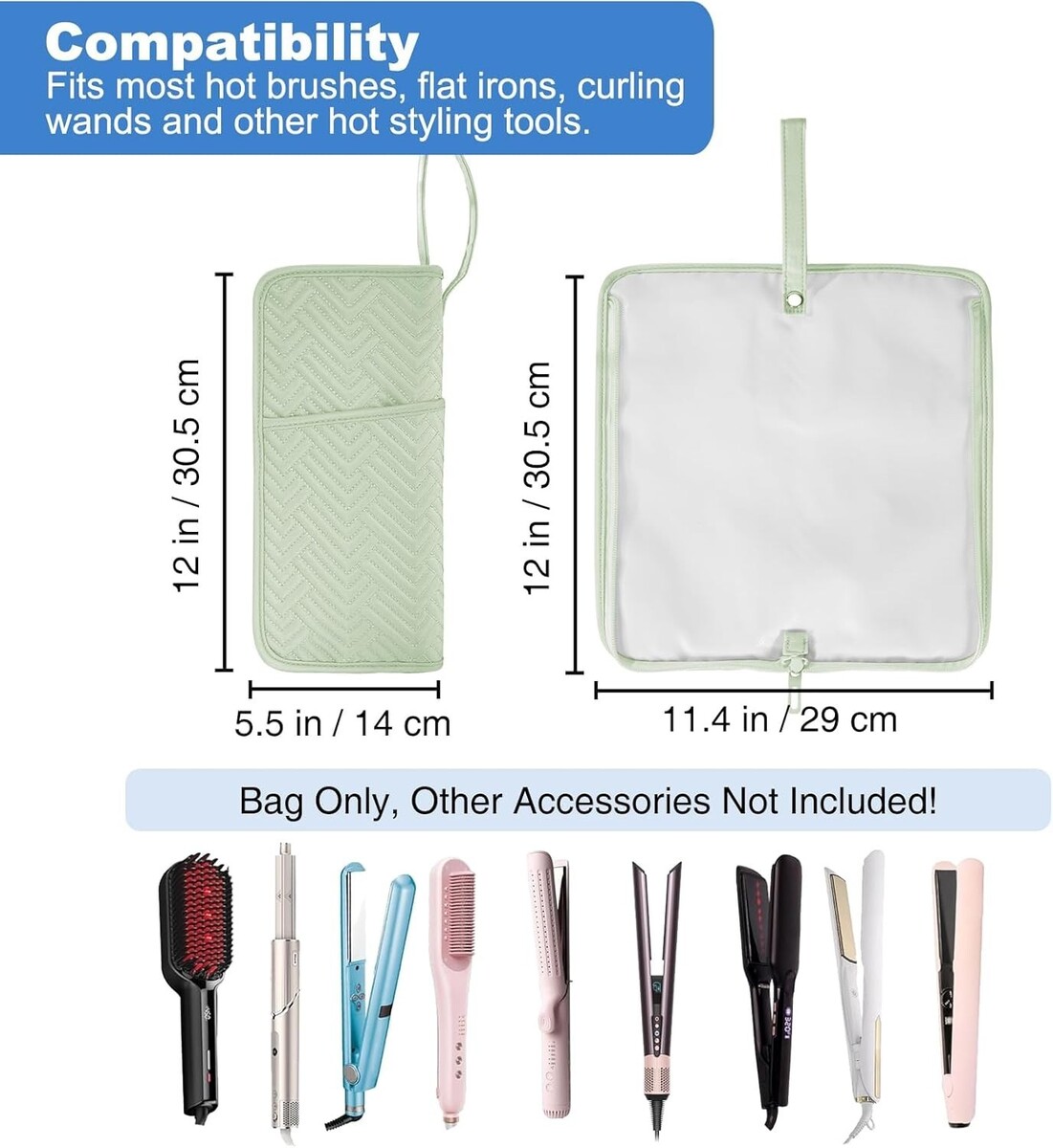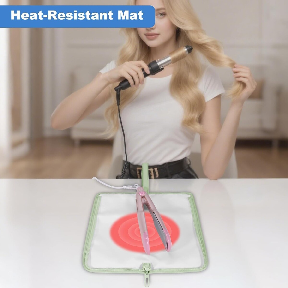 2-in-1 Hair Tools Portable Organizer - Heat-Resistant Mat & Stylish Green Pouch
