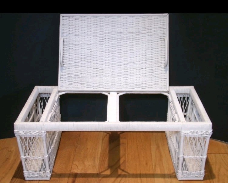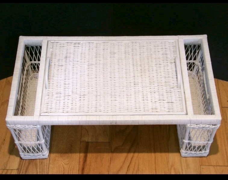 Vintage 1970's/1980's White Wicker Breakfast In Bed Tray w/Removable Tray