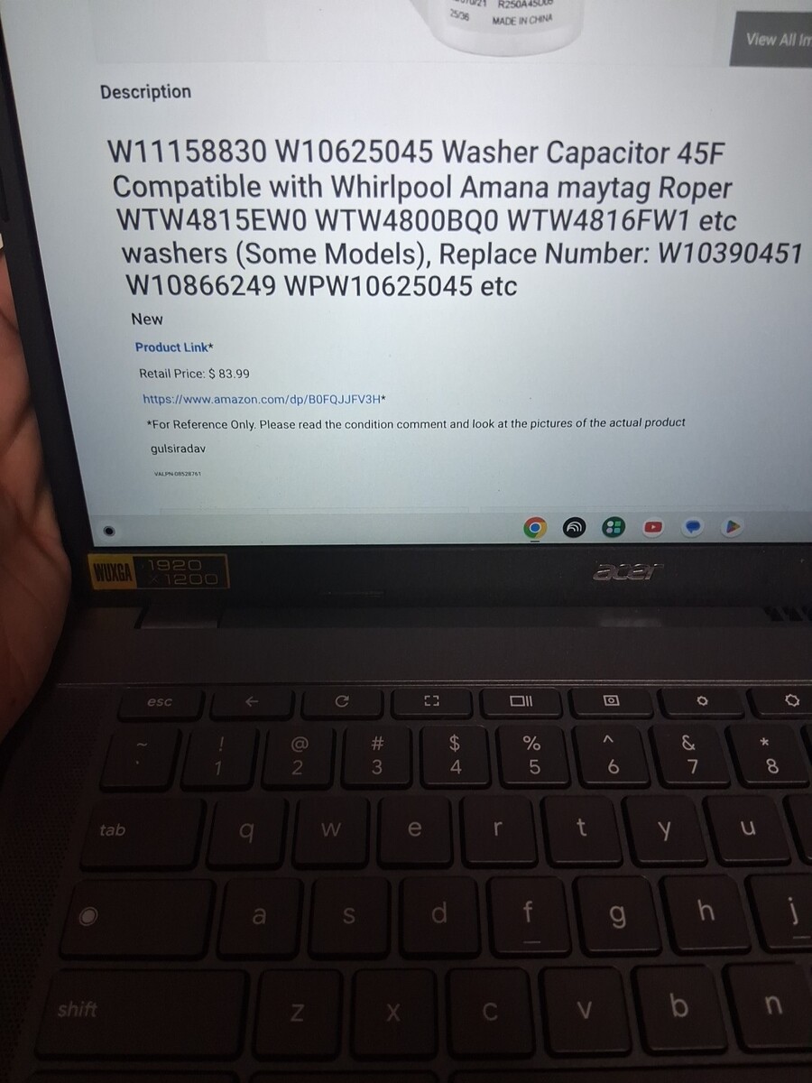 W11158830 W10625045 45F Washer Capacitor For and 31 similar items