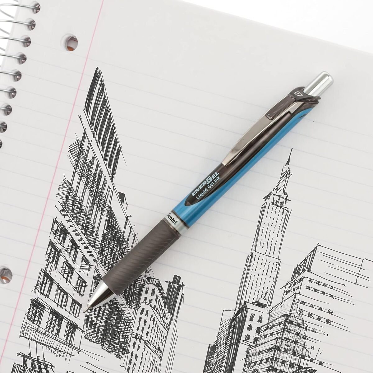 Pentel EnerGel 0.7mm RTX Retractable Liquid Gel Pens, 6 Black & 6 Blue, Needle T