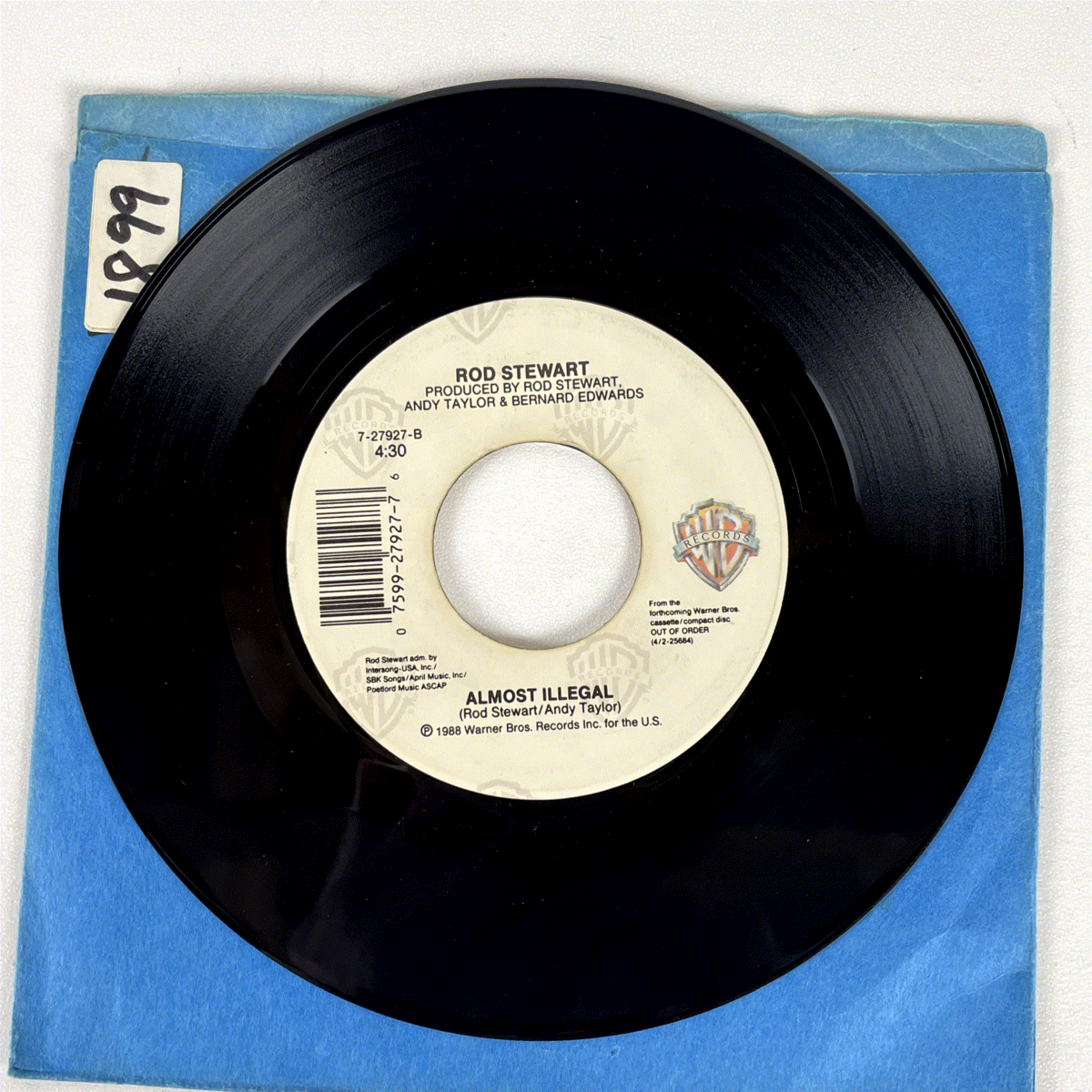 This 45 RPM single, released by Warner Bros. Records in 1988, showcases Rod Stewart's signature vocal style and enduring appeal. The vinyl plays at the standard speed for singles, ensuring optimal sound quality for these timeless tracks. A must-have for Rod Stewart collectors and fans of late 80s pop rock, this single captures the essence of a pivotal era in his career, making it a valuable addition to any vinyl collection.