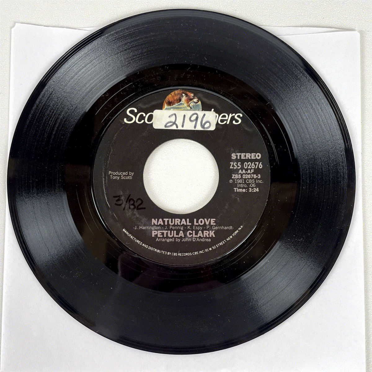 Manufactured and distributed by CBS Records in New York, this 45 RPM single captures the essence of early 80s pop. Produced by Tony Scotti and arranged by John D'Andrea, the record carries the catalog number ZS5 02676. It's a must-have for Petula Clark fans and vinyl enthusiasts looking for a piece of music history from an iconic artist.