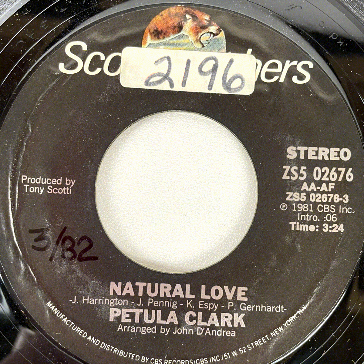 Discover this classic 7-inch vinyl single from the legendary Petula Clark, released in 1981 on the Scotti Brothers label. This record features the track "Natural Love" on the A-side and "Because I Love Him" on the B-side, showcasing Clark's enduring vocal talent. Both tracks are presented in clear stereo sound, making this a fantastic addition for collectors of pop and easy listening music.