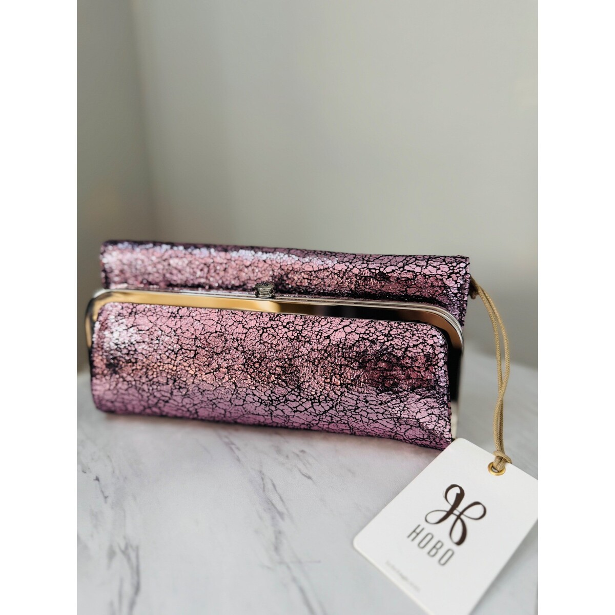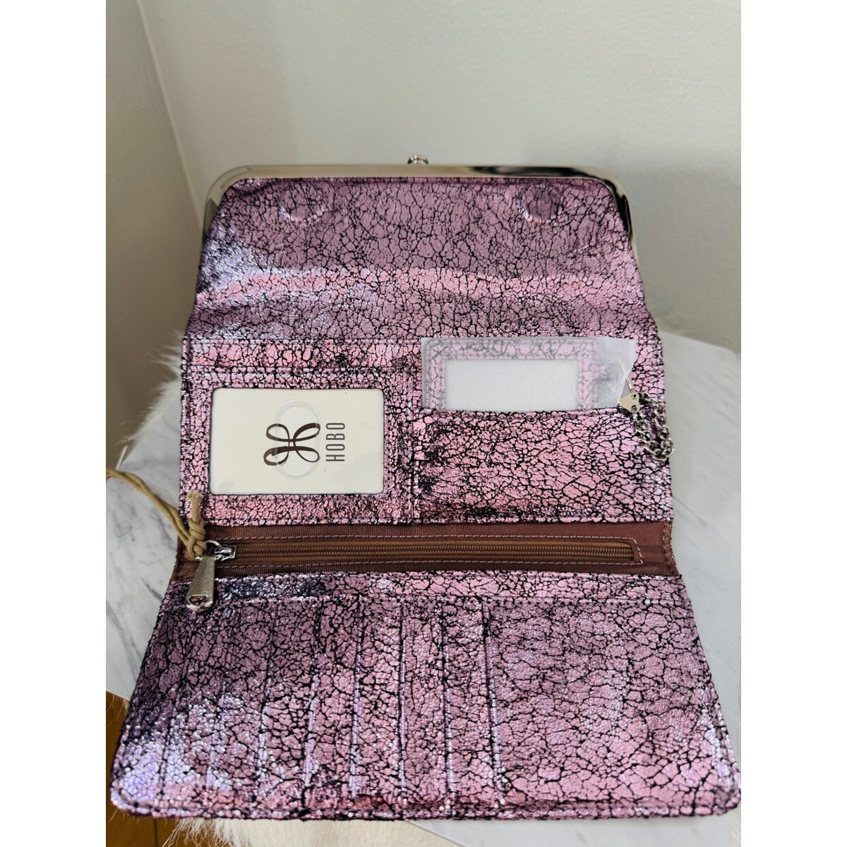 HOBO Rachel Continental Clutch Leather Wallet Blushed Crackle Metallic, NWT