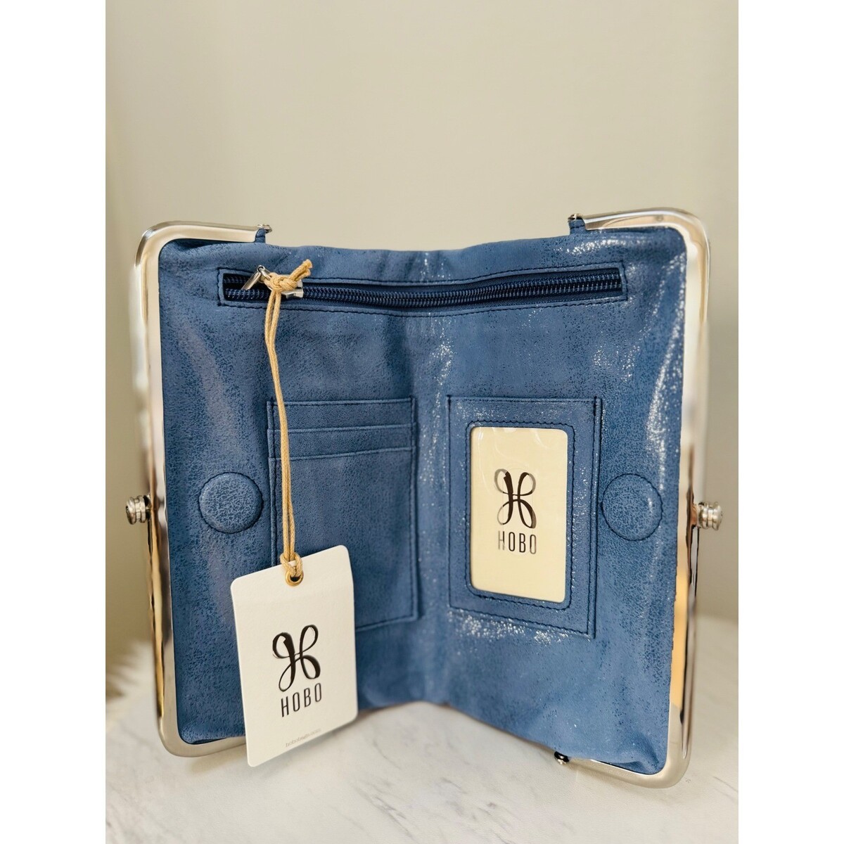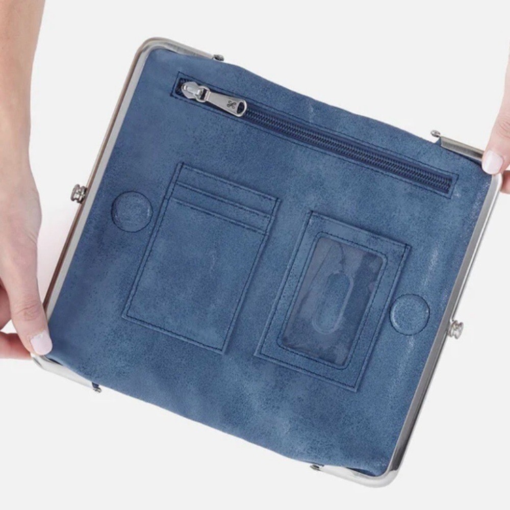Hobo Lauren Clutch-Wallet in Buffed Leather, Blue Azure, NWT