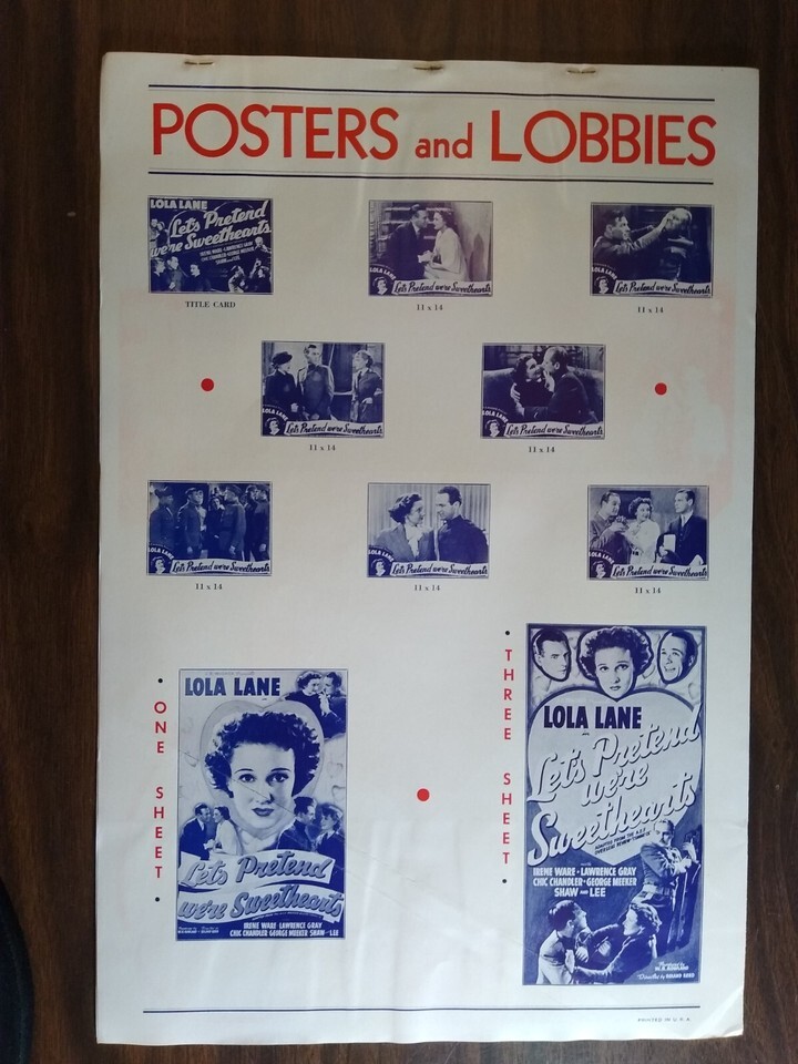 Lola Lane Let's Pretend Were Sweethearts Movie Poster Brochure 1936 Original 18"