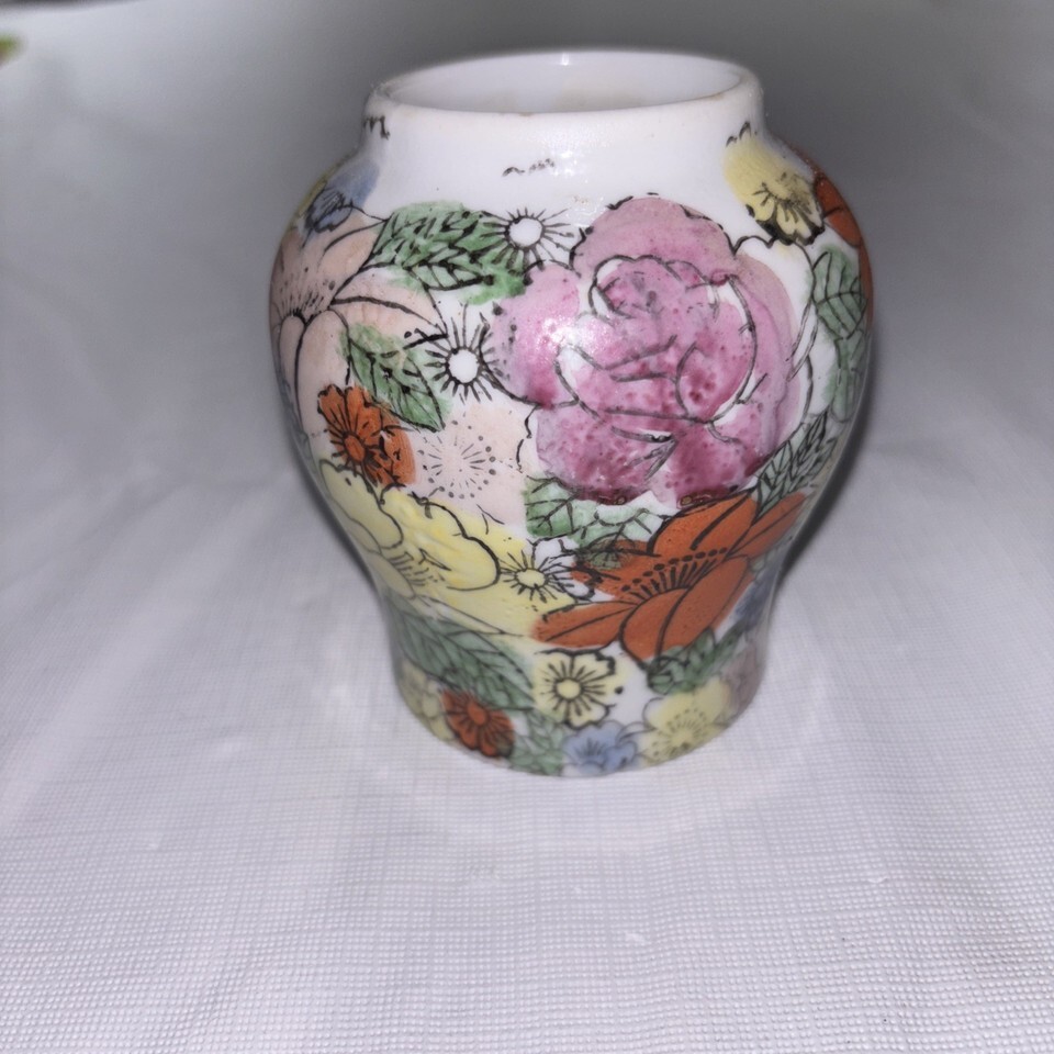 Vintage Hand painted, Chinese Porcelain Vase With Vibrant Floral Design