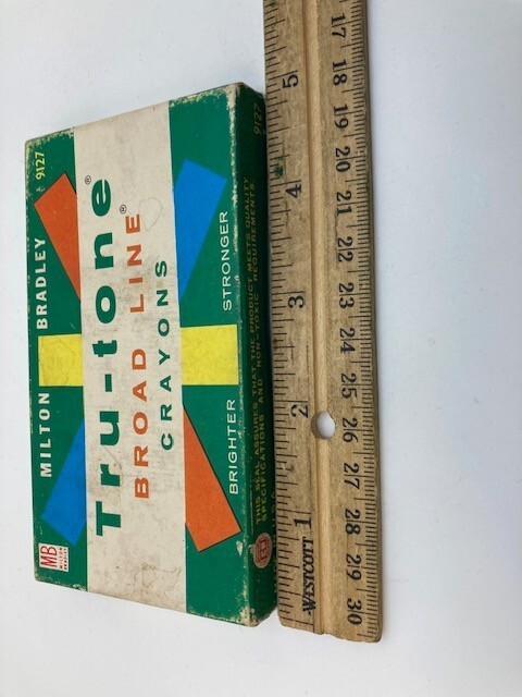 Vintage Milton Bradley Tru-Tone Broad Line School Crayons #9127 Box w/6 Crayons