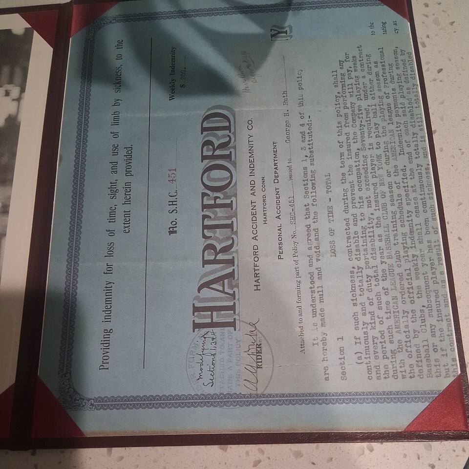 The Hartford Babe Ruth Accident Policy and 50 similar items