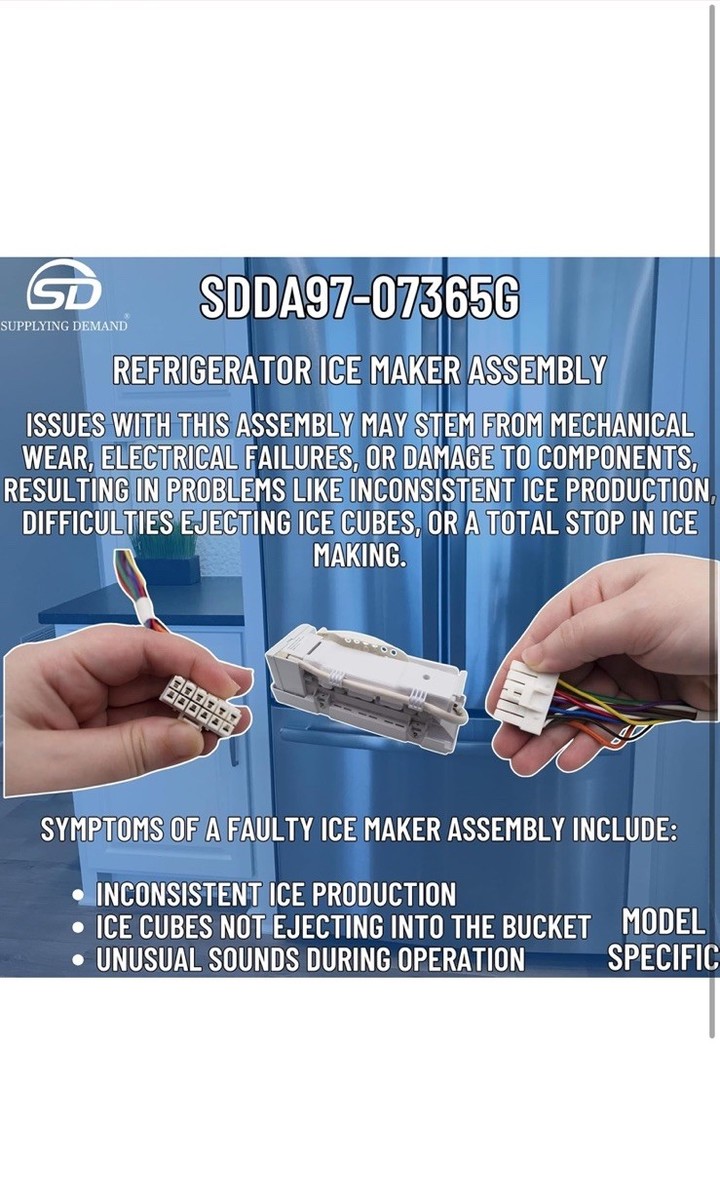The New Supplying Demand Samsung Refrigerator Ice Maker DA97-07365G, DA97-07365A is a high-quality replacement ice maker designed for Samsung refrigerators. Made in the United States by the brand SD, this white ice maker is compatible with the Samsung model DA97-07365G. This ice maker is essential for keeping your refrigerator running smoothly and ensuring you have a steady supply of ice for your convenience. With this replacement part, you can trust that your Samsung refrigerator will continue to perform at its best.