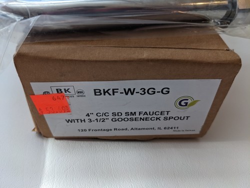 Up for sale is a new in box BK Resources BKF-W-3G-G 4 in Wall Mount Hand Sink Faucet Gooseneck Spout.