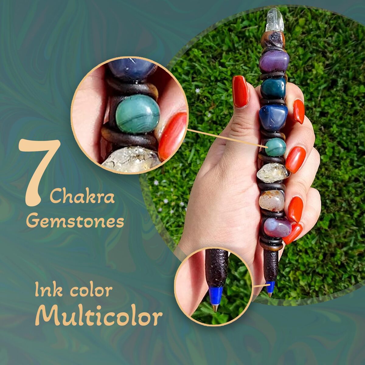 Mia Jewel Shop - Rainbow Chakra Stones Healing Crystals Refillable Ink Pen | Cry