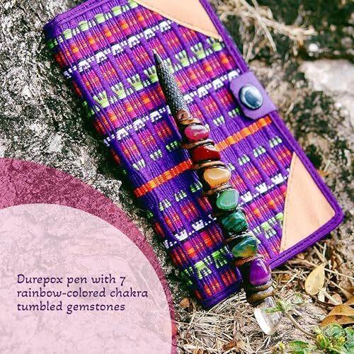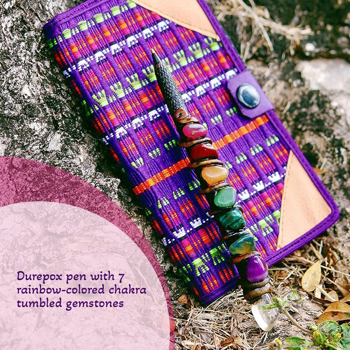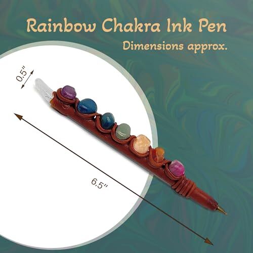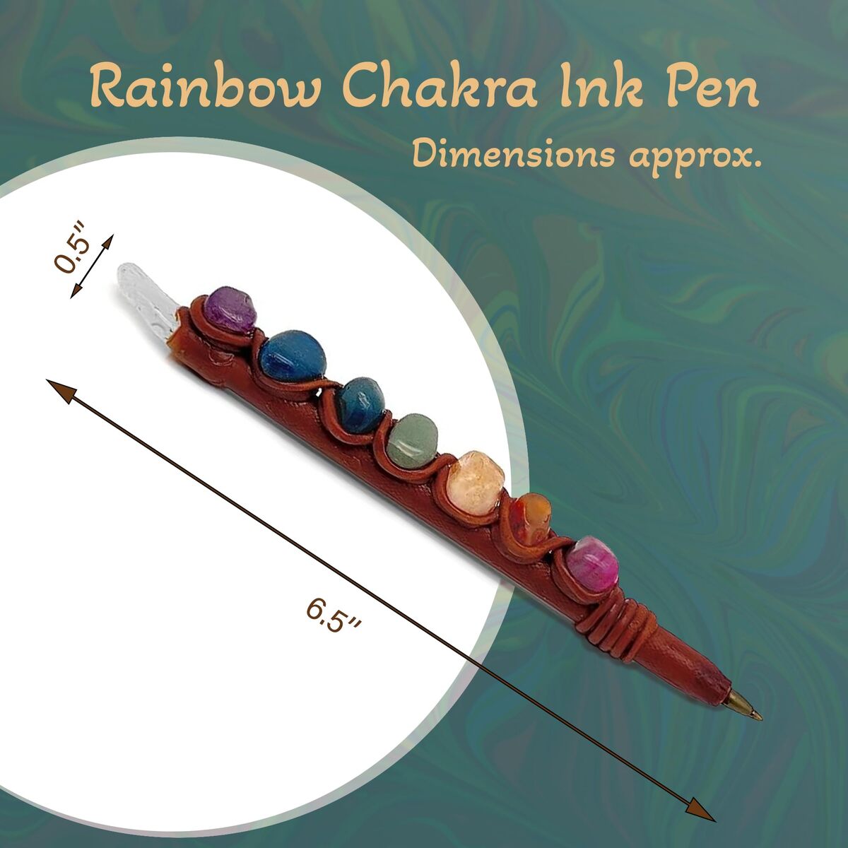 Product description: Chakras are powerful energy centers that align along the spine, each connected to specific glands and organs, regulating the flow of Chi, or life energy, throughout the body. These seven chakras, represented by the full spectrum of the rainbow, work together to restore balance in the mind, body, and spirit, promoting overall well-being and harmony. This cute pen is more than just a writing tool?it?s a spiritual and artistic piece designed to bring positive energy into your daily life. Crafted with high-quality Durepox resin, it features seven chakra-aligned tumbled gemstone crystals, each infused with unique healing crystal properties that encourage balance and mindfulness. Whether you use it for journaling, meditation, or as a stylish desk accessory, this gemstone pen combines function with spiritual significance, making it a meaningful addition to any collection. A perfect women gift, this handmade in Peru treasure is ideal for those who appreciate Reiki gifts, energy healing, and beautifully crafted stationery. Whether for personal use or as a thoughtful present, this elegant rainbow chakra pen is designed to inspire and uplift. Refillable ballpoint ink pen included. Dimensions: approx. 6.5" x 0.5" x 0.5". Weight: 1 oz.