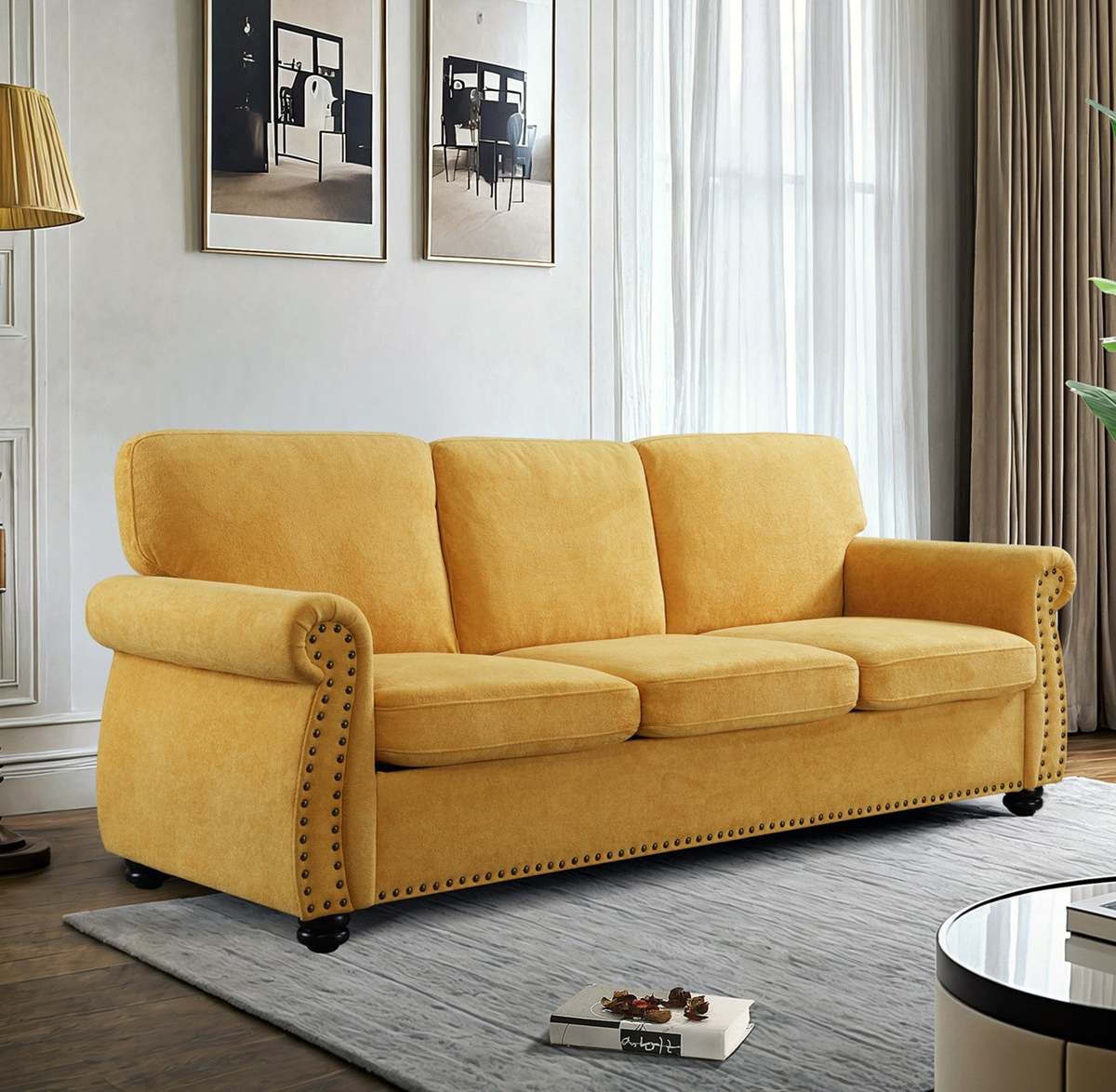 Soft Mustard Velvet 3 Seater Sofa for Living and 50 similar items