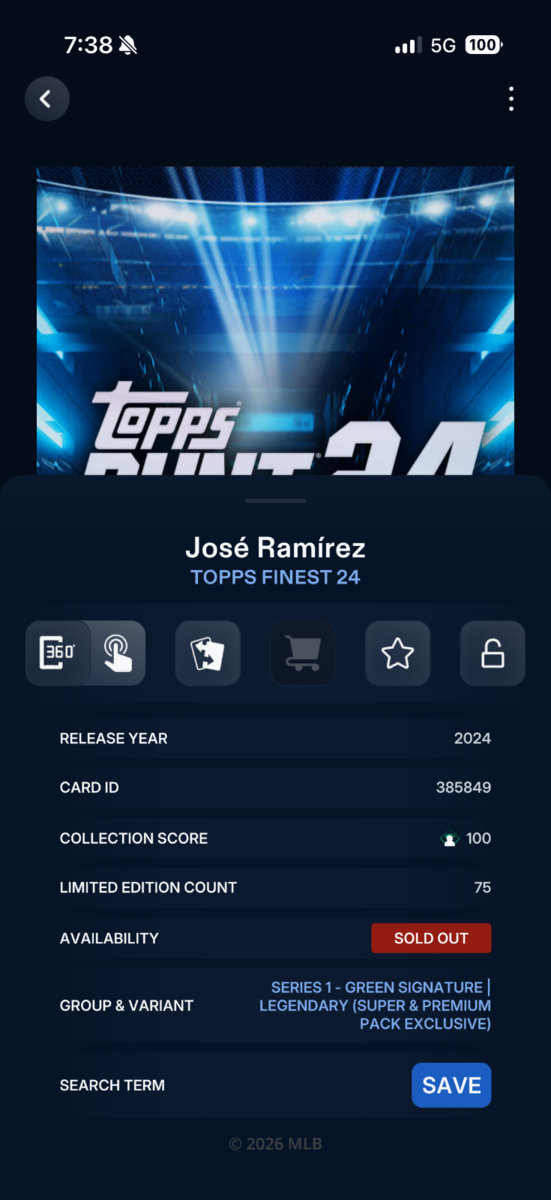 [DIGITAL CARD] TOPPS BUNT Jose Ramirez - 2024 Green Signature /75 Legendary
