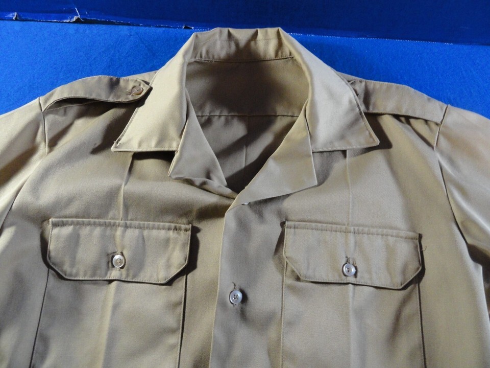 VINTAGE US ARMY TAN 445 SHORT SLEEVE DURABLE PRESS SERVICE DRESS SHIRT 38X29