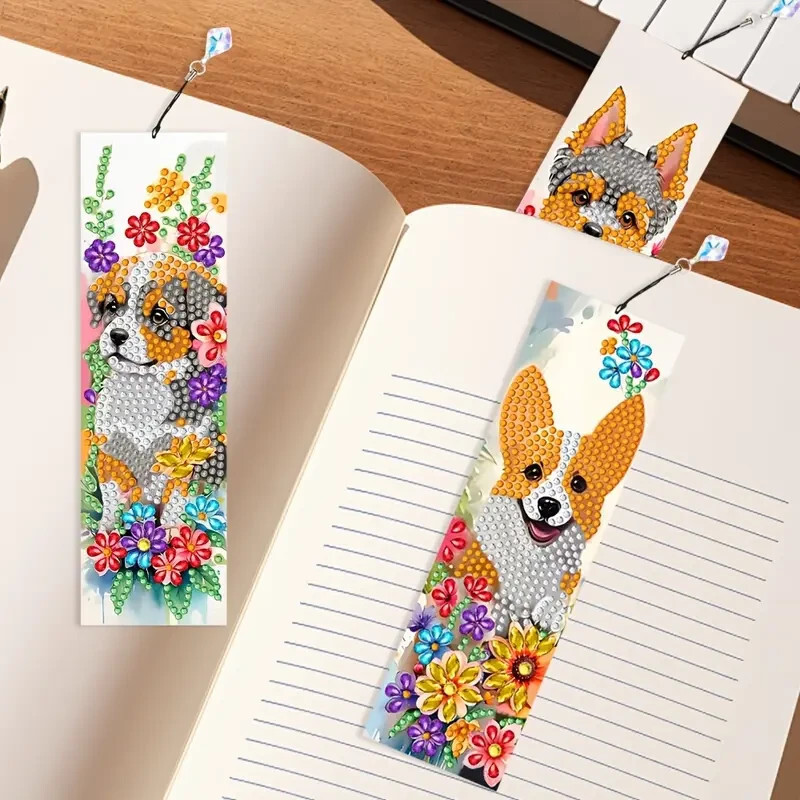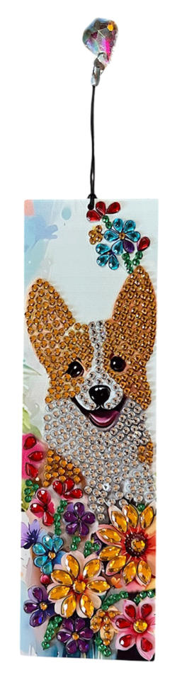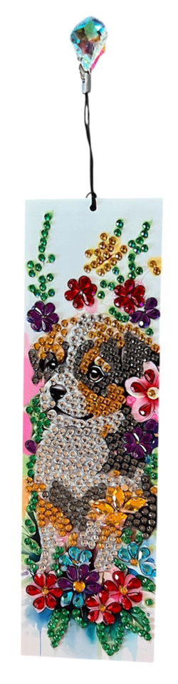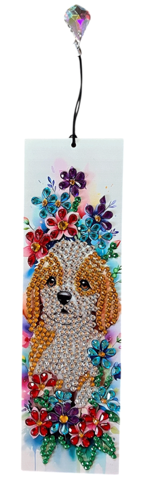 Diamond Painting Completed Dogs and Flowers Bookmark with Tassel