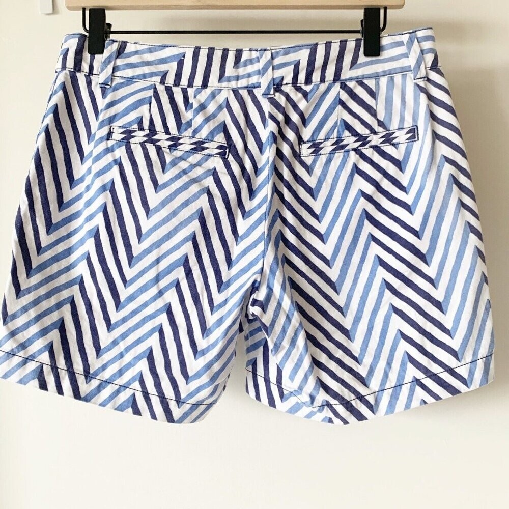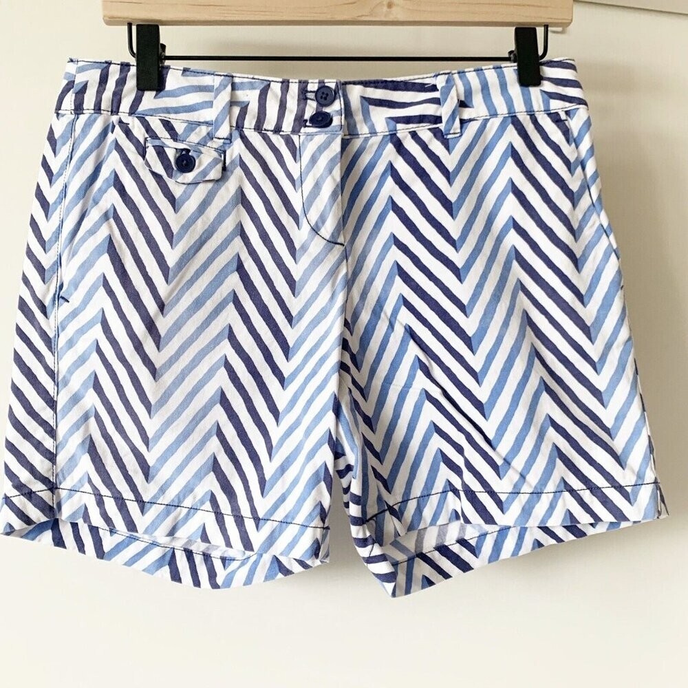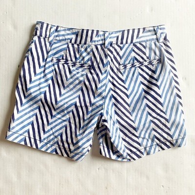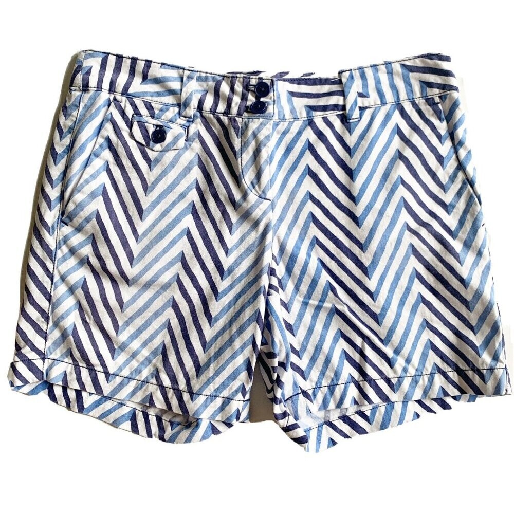 LOFT Original Chino Shorts Blue White Chevron Stripe 5" Inseam Size 0