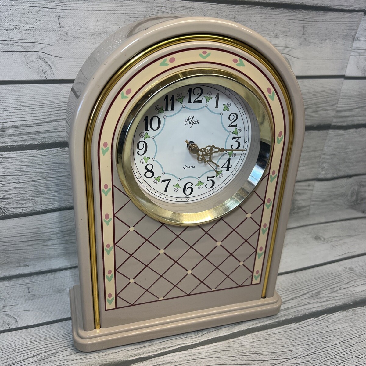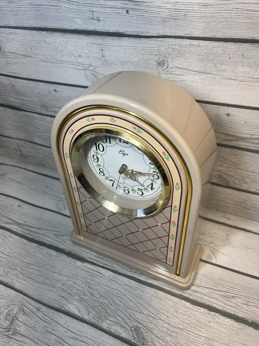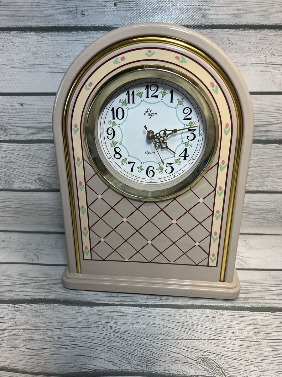 Vintage Elgin Shelf Clock 80s Cottage Floral