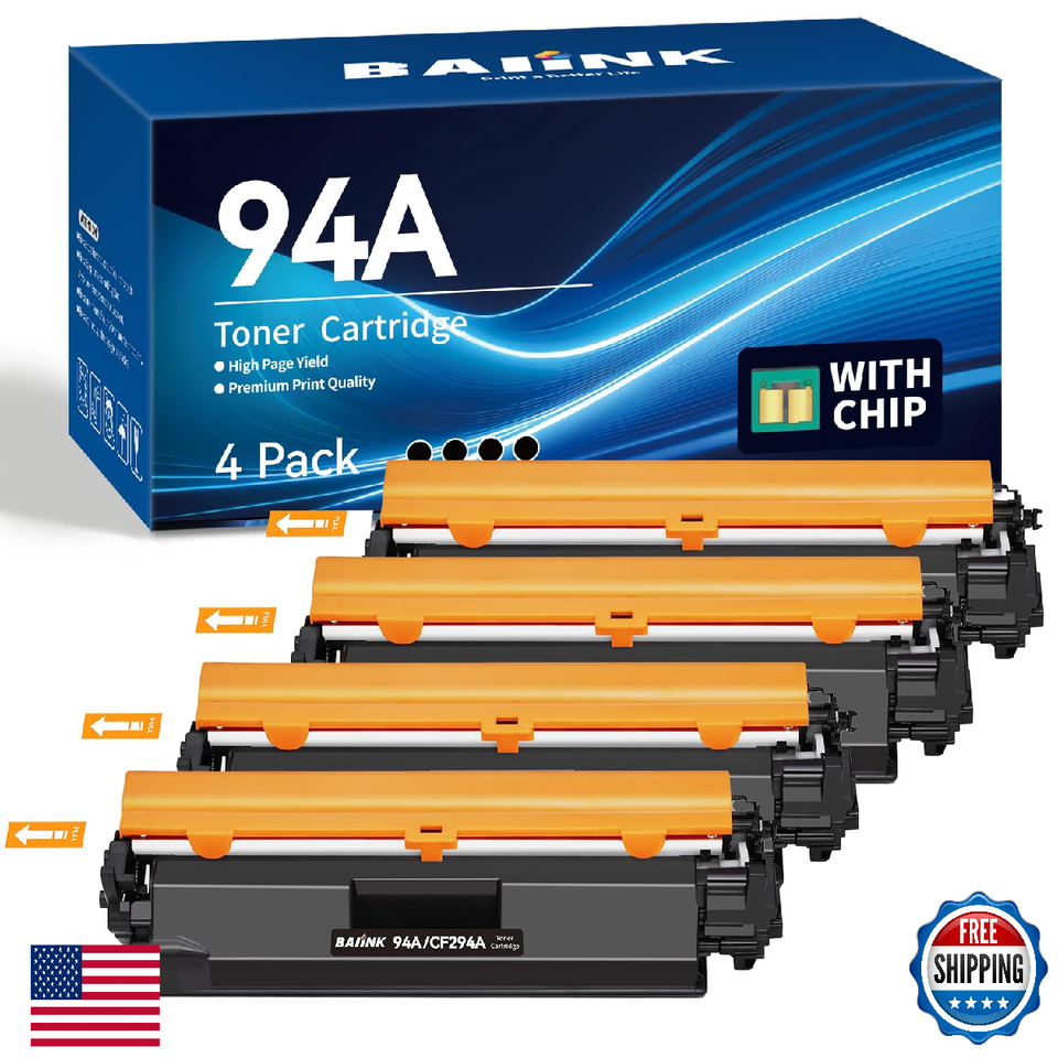 Package Includes: 4 pack of compatible toner cartridge replacement for HP 94a toner cartridge black 94X CF294A toner cartridge,Perfect Compatibility: Compatible for HP Laserjet Pro MFP M118dw M148dw M148fdw M149fdw, M148, M118, M149 Printer Toner,Page Yield: Up to 1,200 Pages Per CF294A 94a toner cartridge m118dw toner cartridge (5% coverage),With Chip: 94a toner cartridge black, which uses the latest upgraded chip to ensure high compatibility, is designed for easy installation,Excellent Performance: Our CF294A 94a toner cartridges deliver superior printing results with clear prints