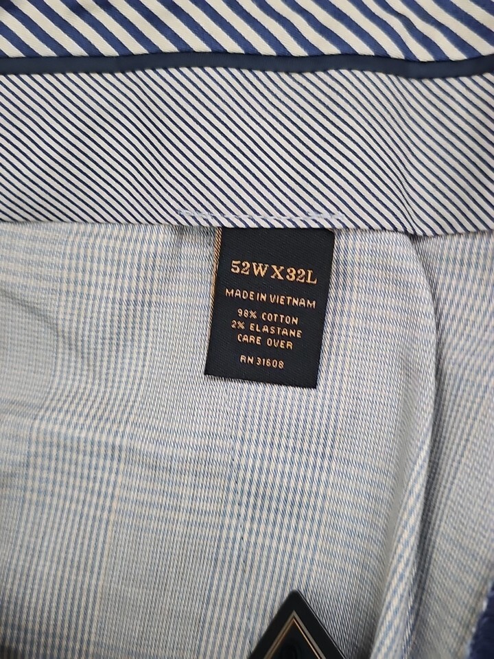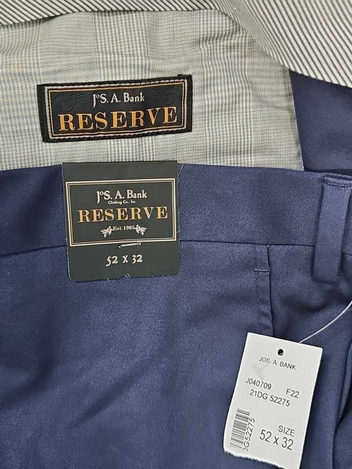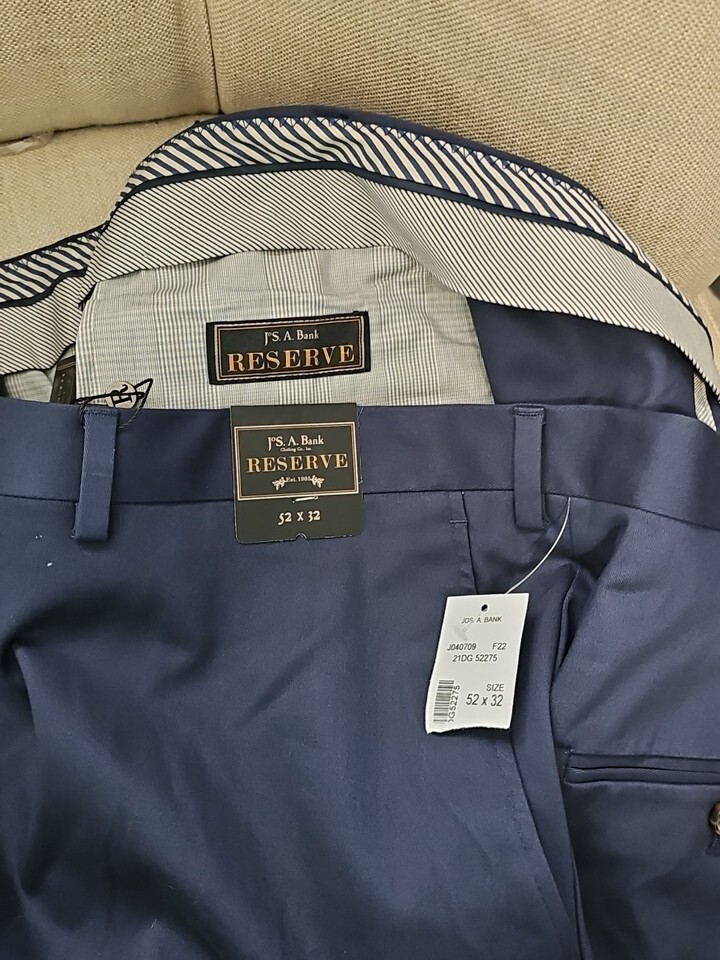 Jos A Bank Reserve Flat Front Chino Stretch Tailored Fit Pants 52x32 NWT NAVY