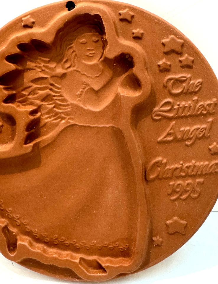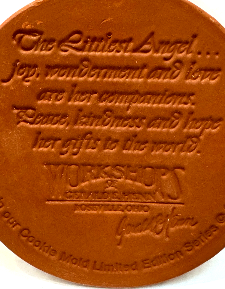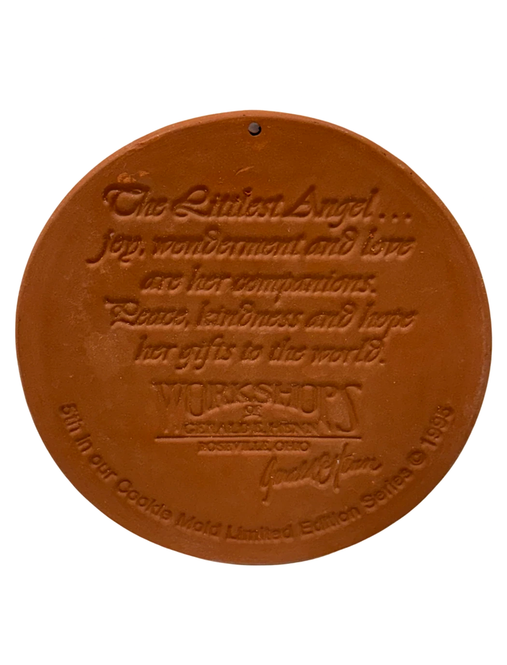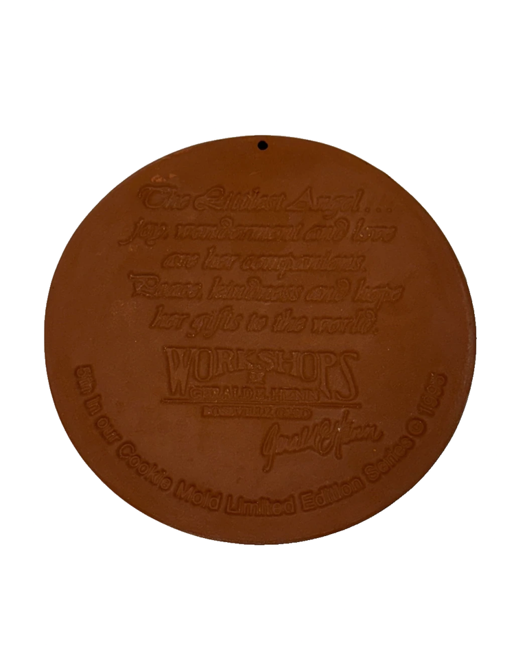 The Littlest Angel Christmas 1995 Gerald Henn Cookie Mold Brown Stoneware Round
