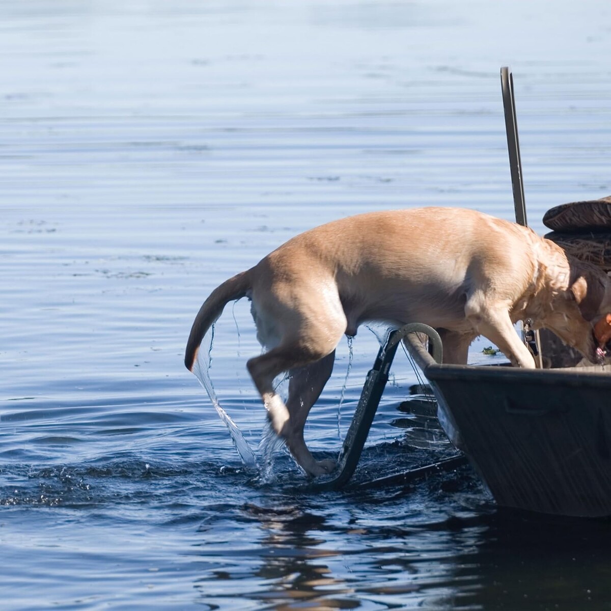 This ultra strong two-way adjustable ladder provides your four-legged hunting companion with an easy, convenient way to enter and exit your duck boat