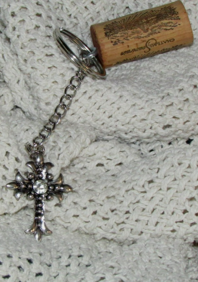 handmade WINE CORK KEY CHAIN w 1-3/4" CROSS and 23 similar items