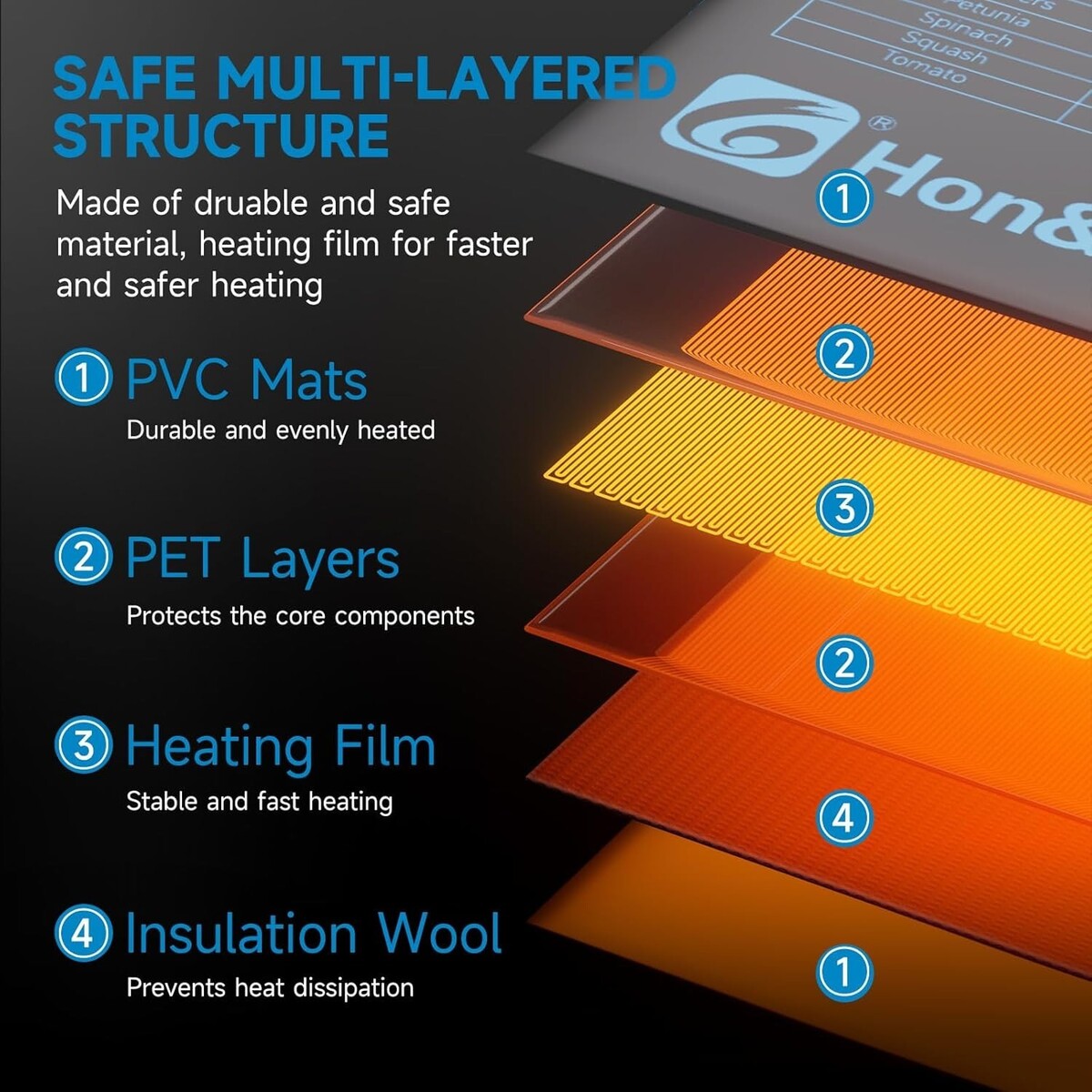 EFFICIENT UNIFORM HEAT: Utilizes advanced metal heating film technology to maintain optimal temperatures around the root zone (68-86F / 20-30C), ideal for seed germination and enhancing germination rates.