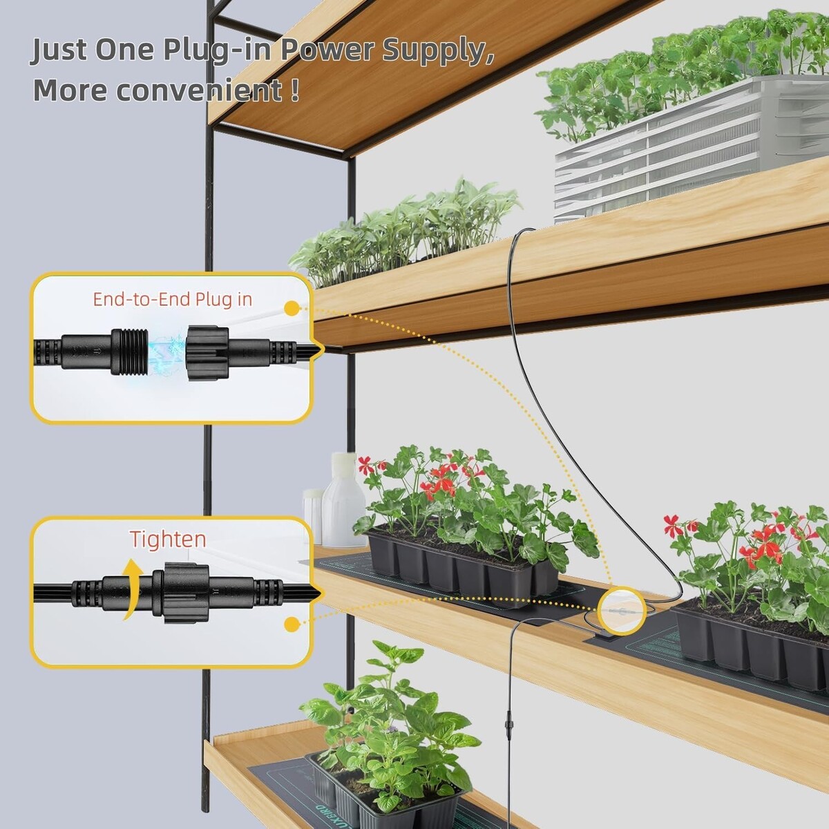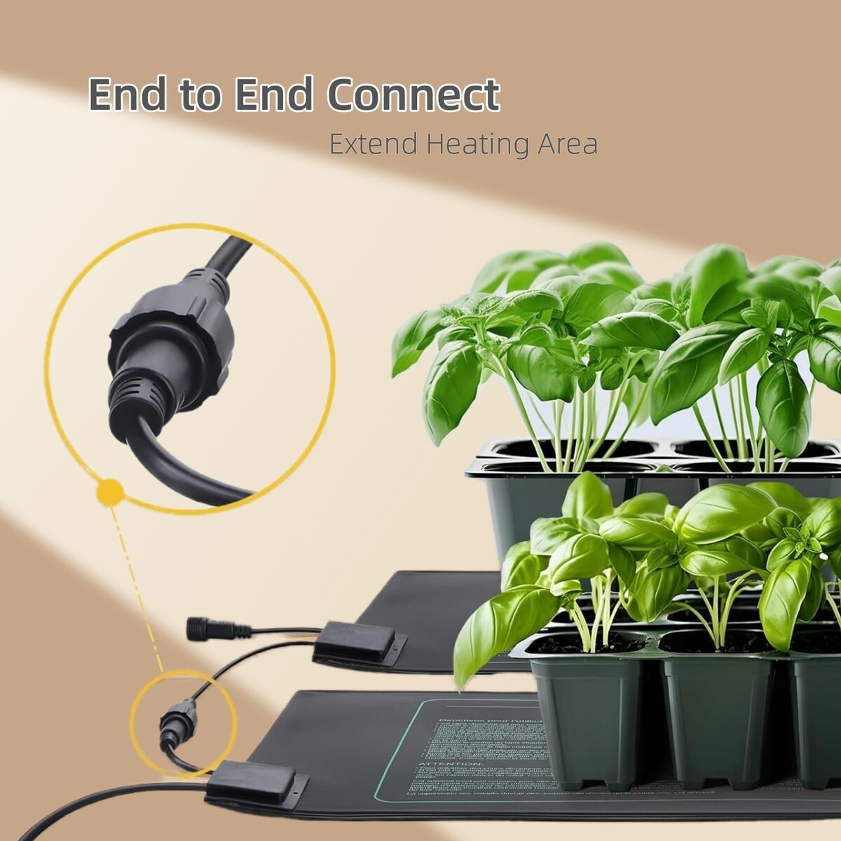 Daisy-Chain Design: Effortlessly connect two mats end to end, allowing one power supply to extend heating across multiple mats for a larger growing area.