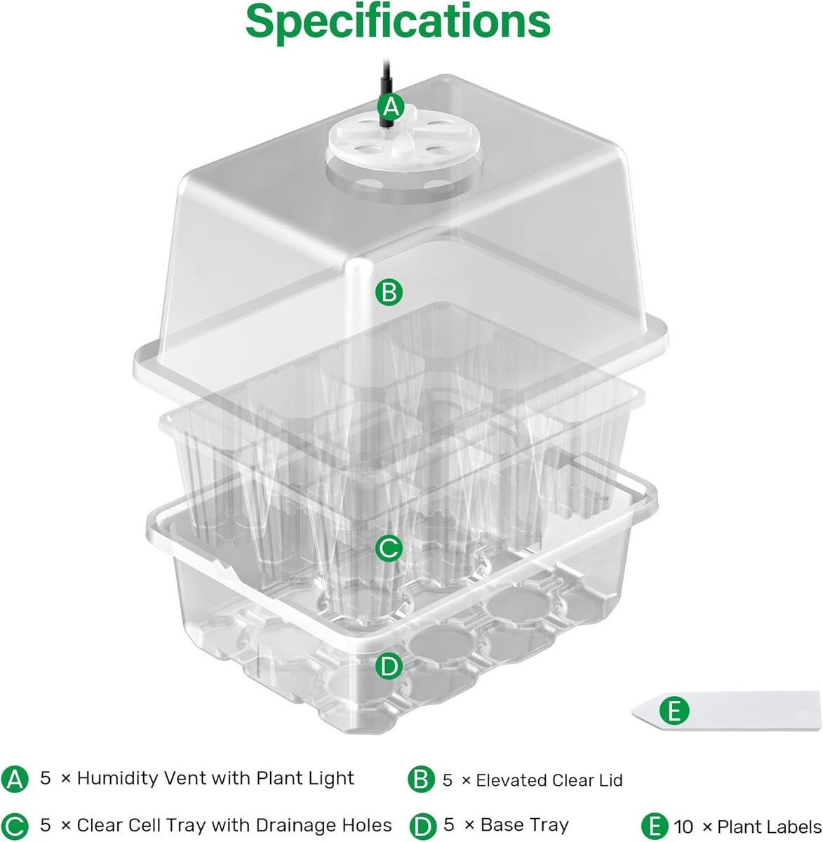 Transform your indoor gardening experience with our 5-Pack Seed Starter Tray, engineered to bring the best out of every plant you nurture. Say goodbye to inadequate lighting and fragile trays, and embrace a gardening solution that offers strength, versatility, and the promise of bountiful growth.