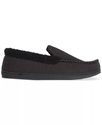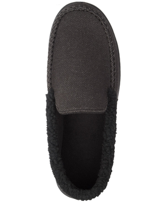 Isotoner Men's Brushed Knit Moccasin Slippers Fleece Lining Black-Medium 8-9