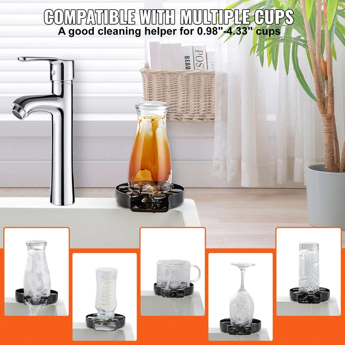 VEVOR - Automatic Glass Rinser Faucet Bottle Washer Cup Cleaner For Sink Tool