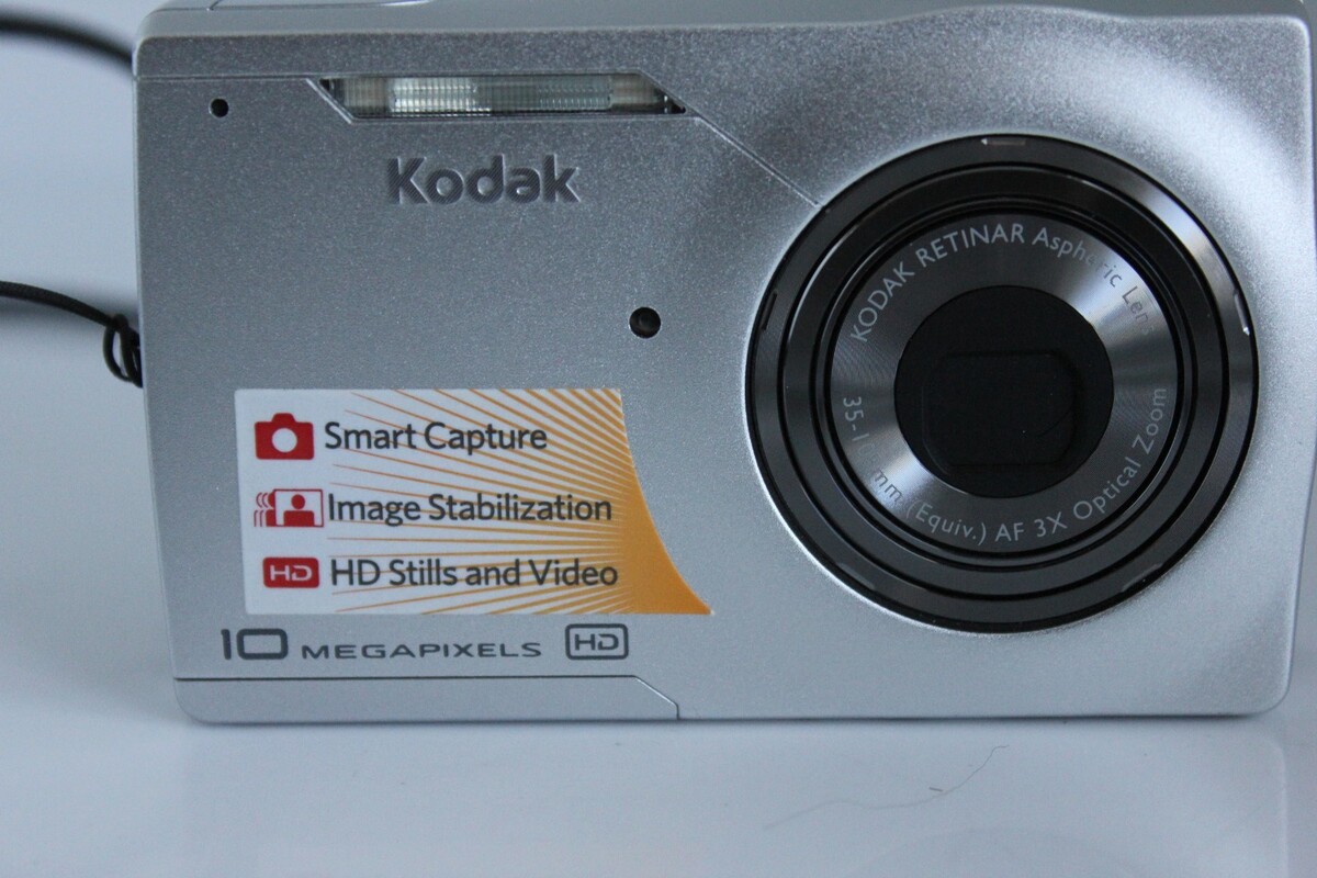 Features a 10.0 megapixel sensor, Kodak Retina lens, image stabilization, and HD stills and video. Compact and lightweight point-and-shoot design.
